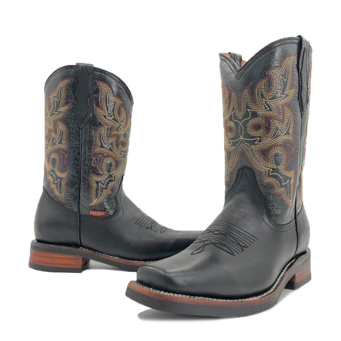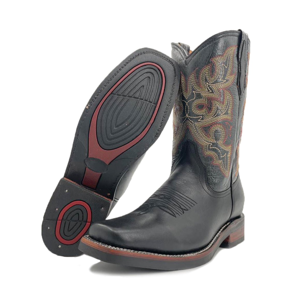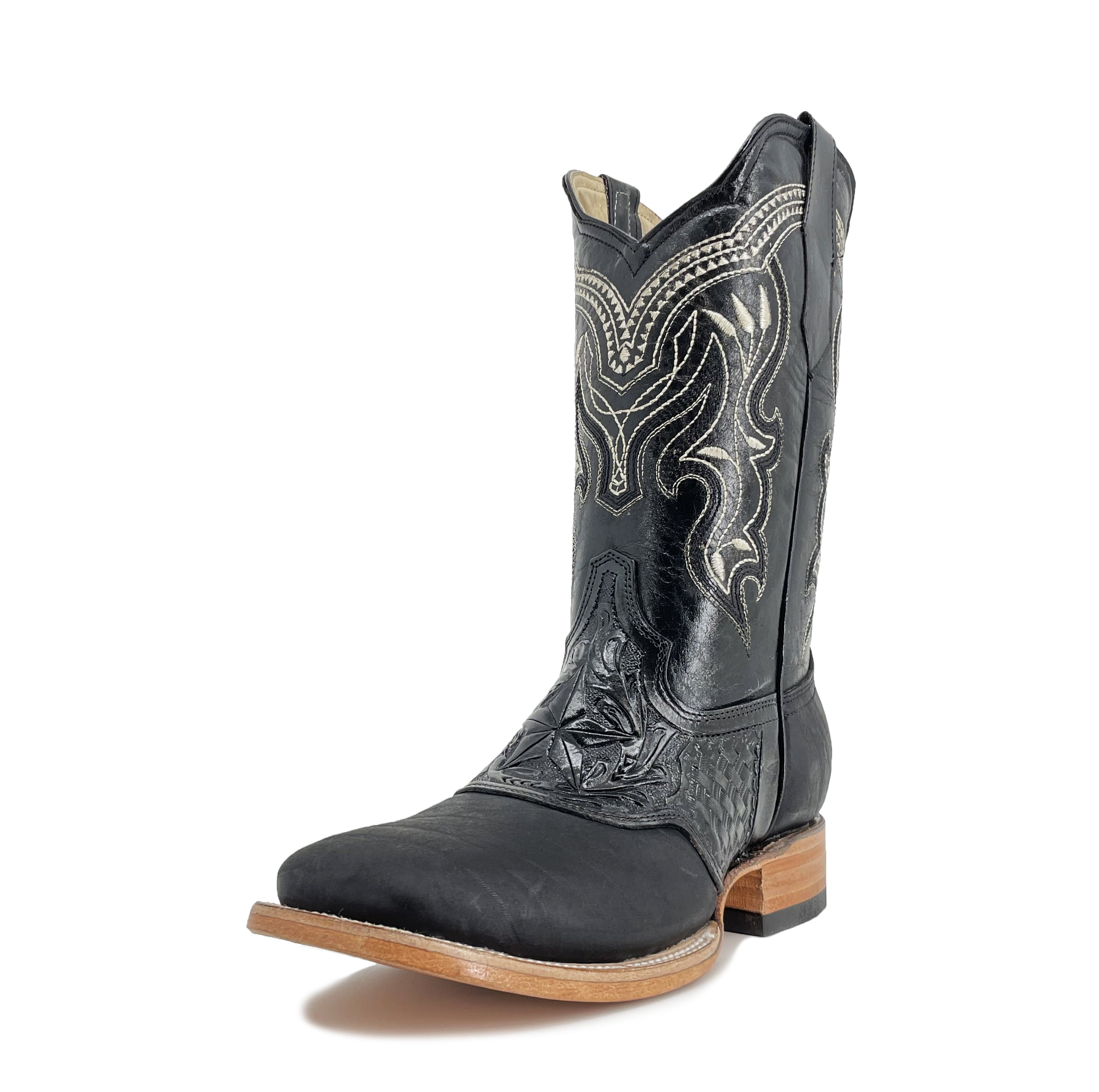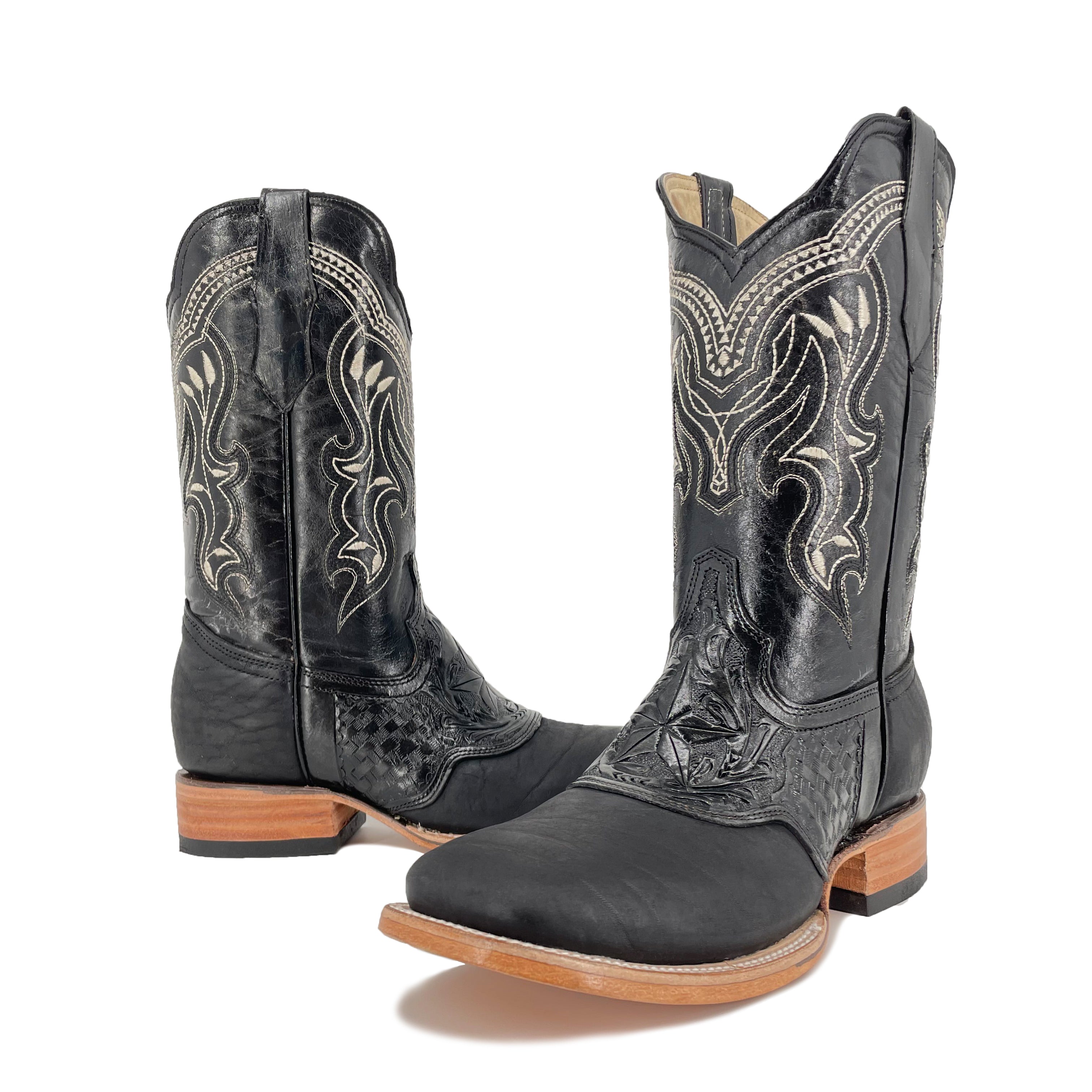 Men's Boots Hand Tooled Square Toe - Bull Neck Black