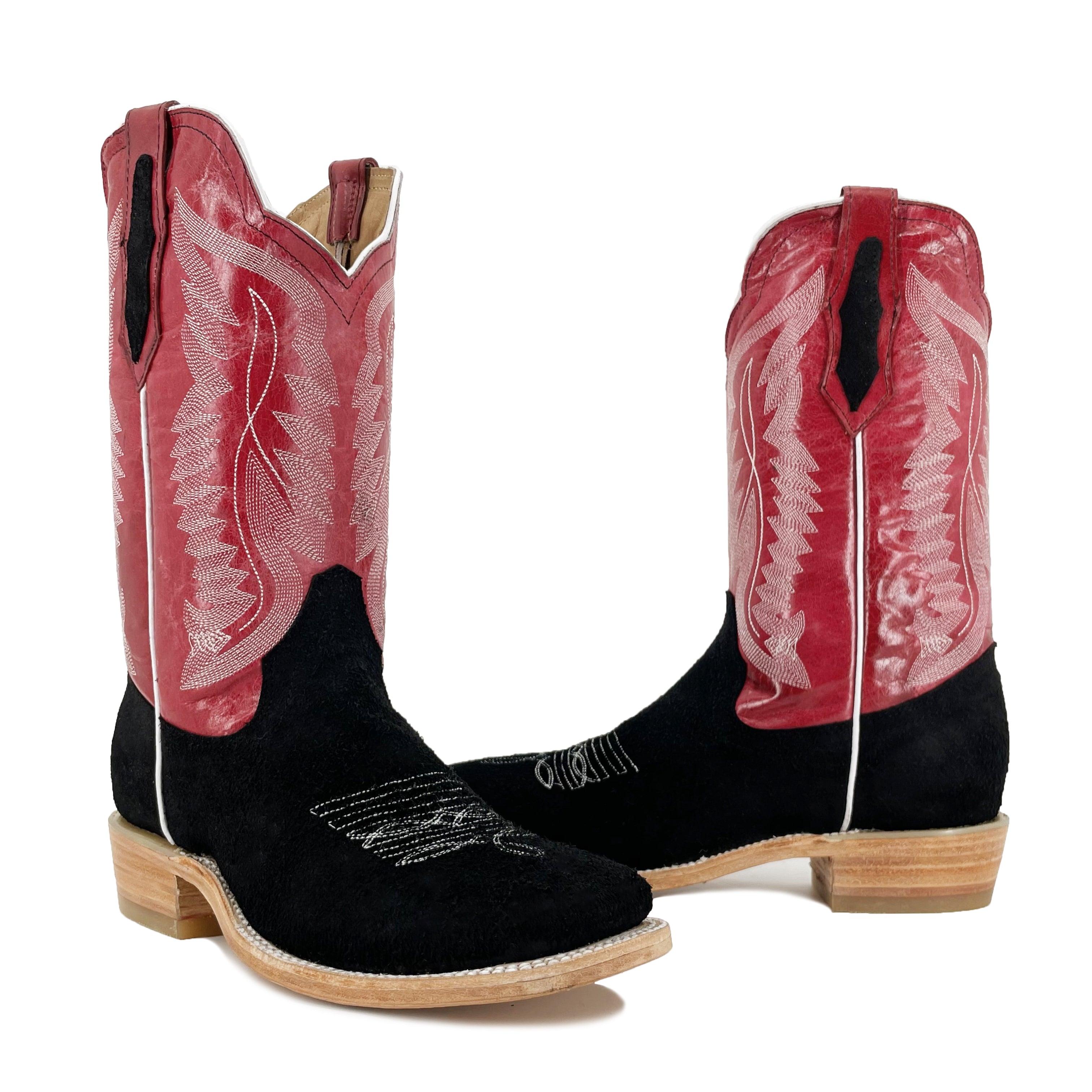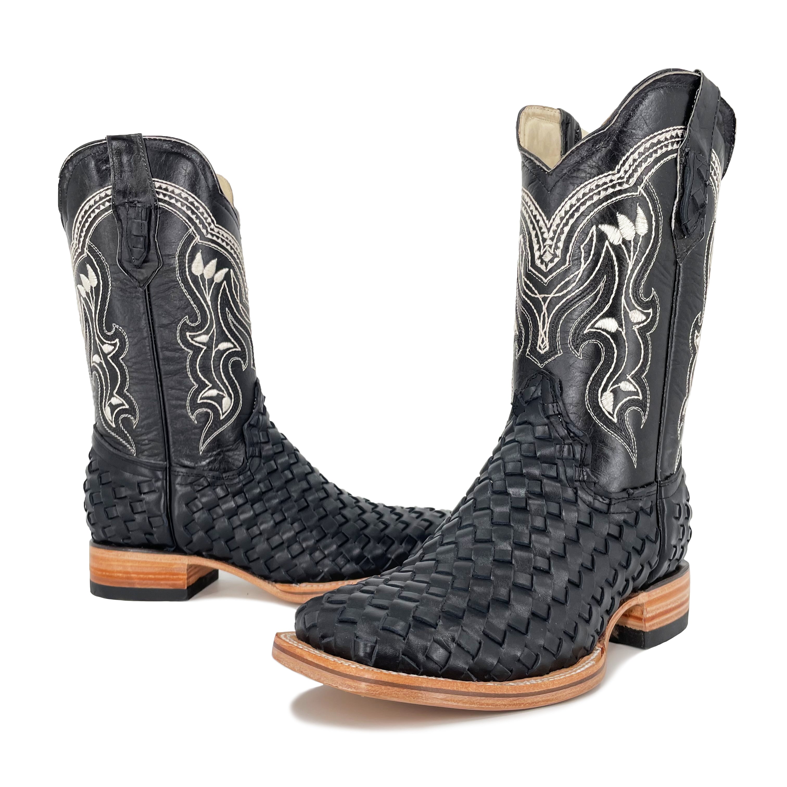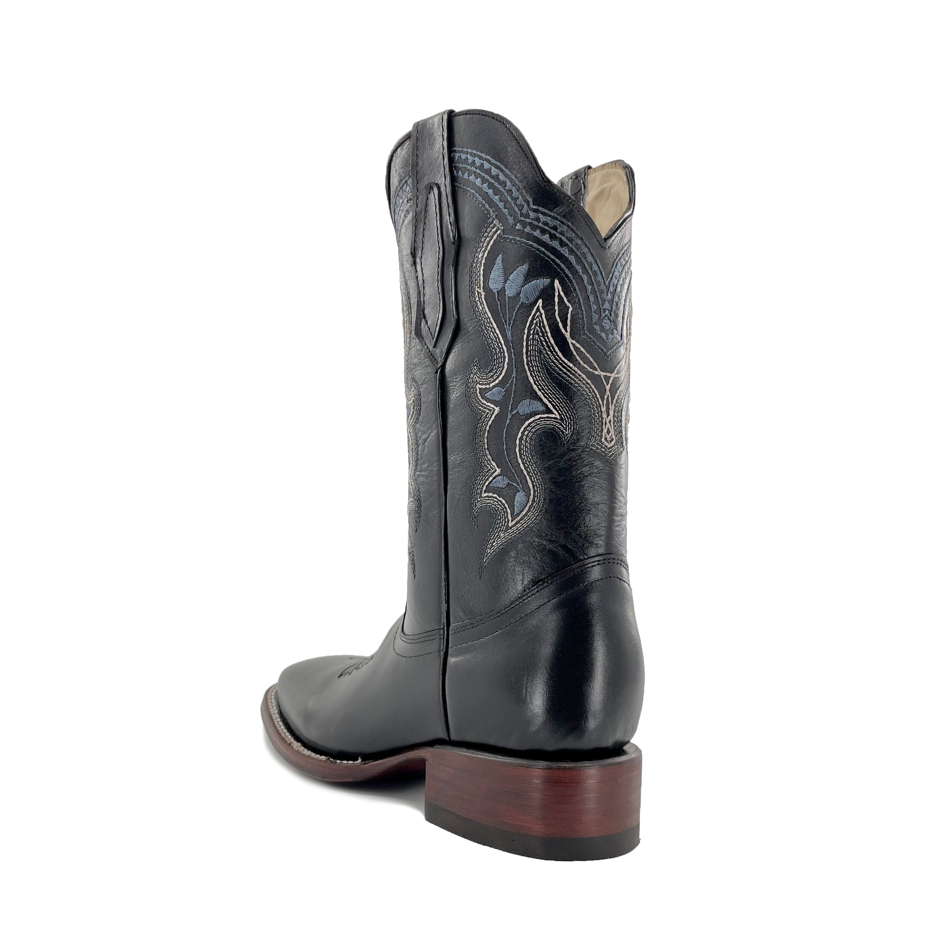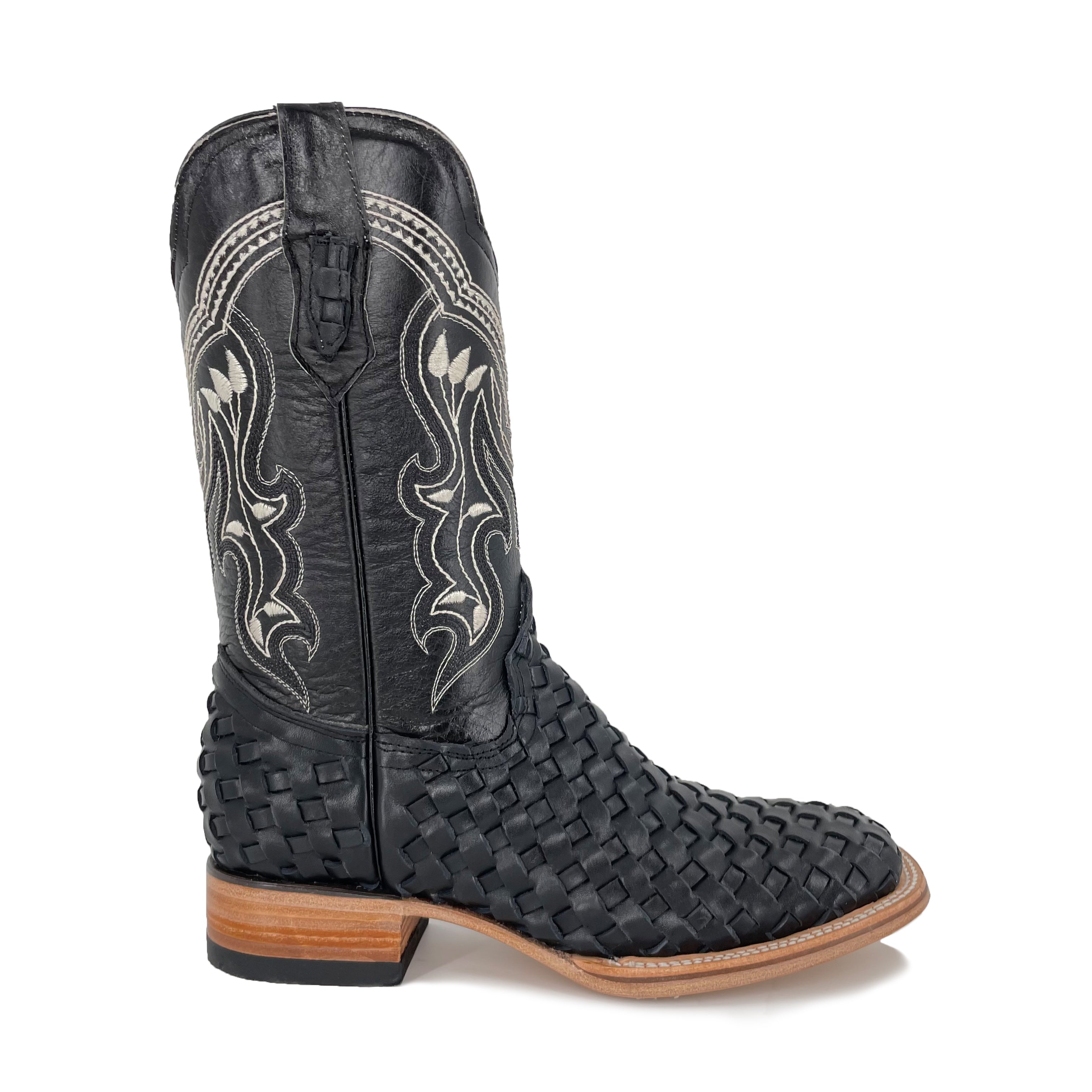 Men's Boots Hand Tooled Square Toe - Bull Neck Black