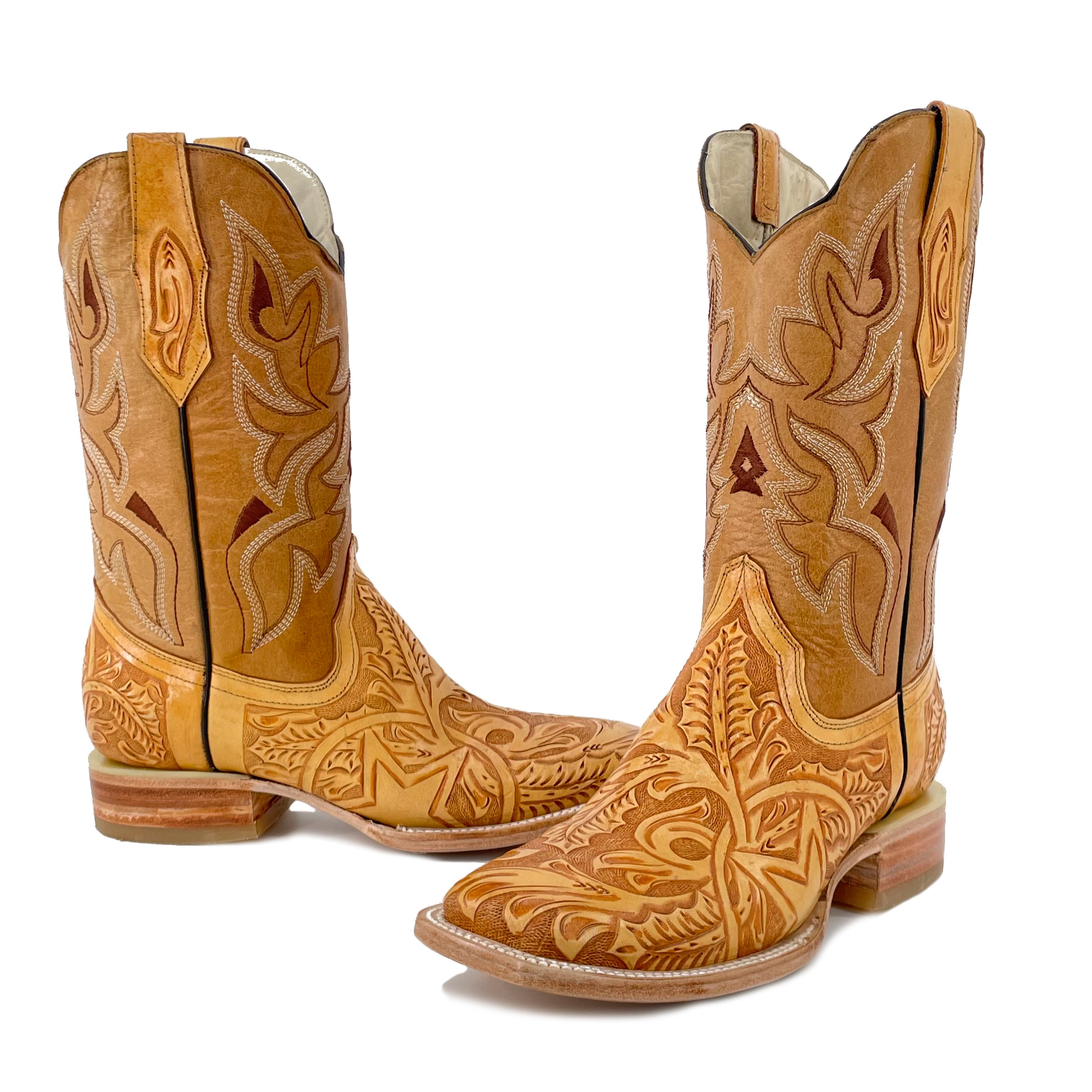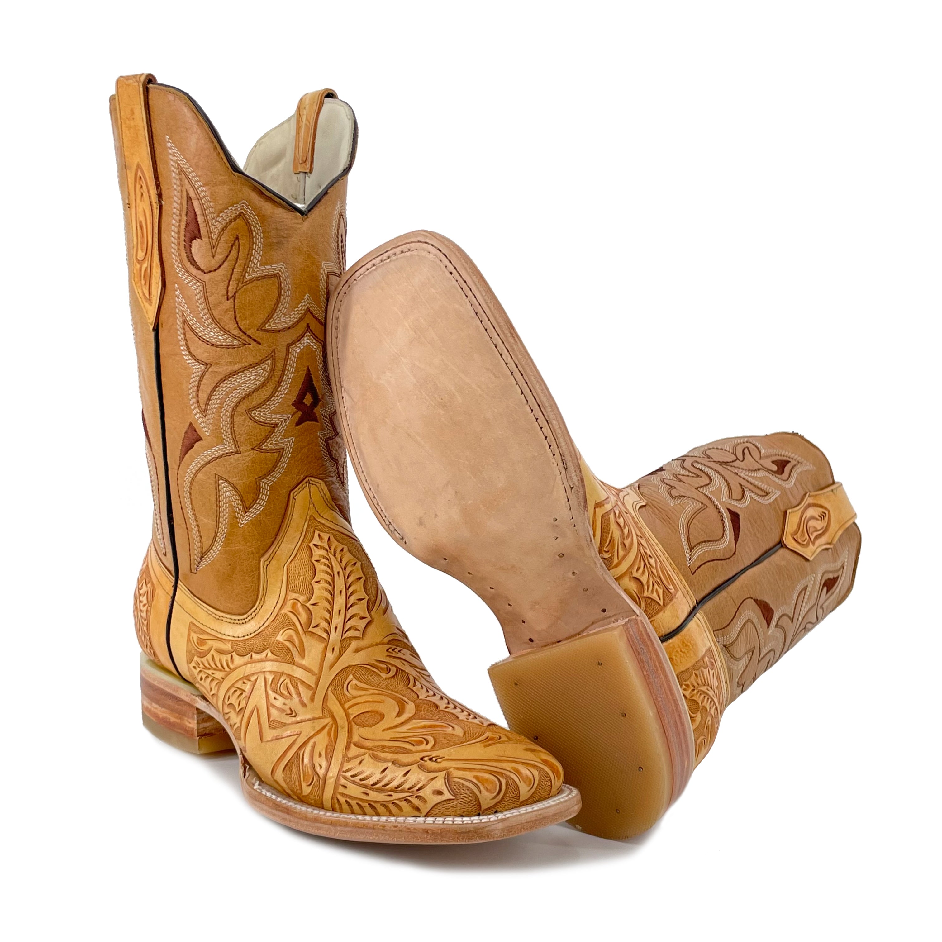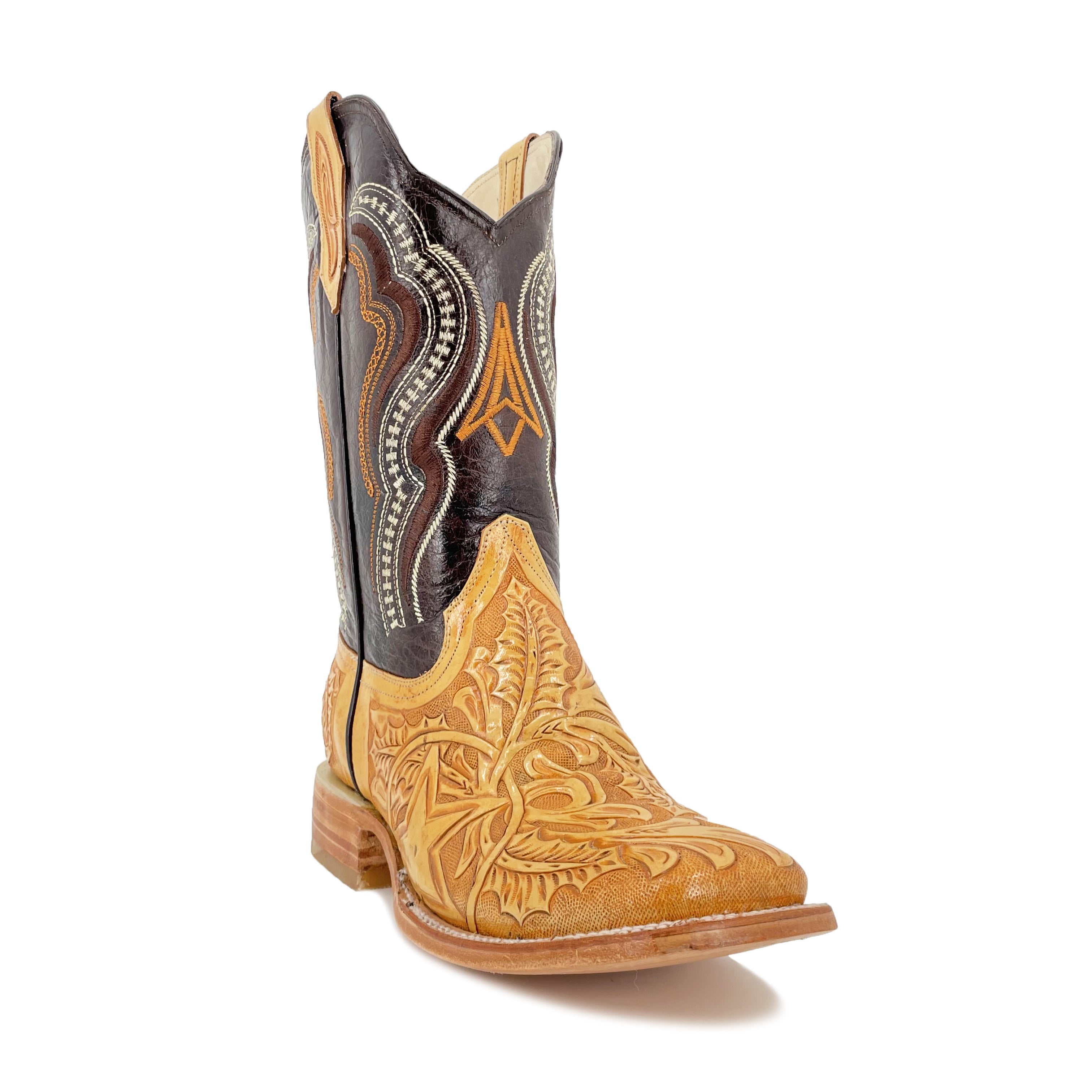 Men Bulldog Hand Tooled Boot - Floral Natural