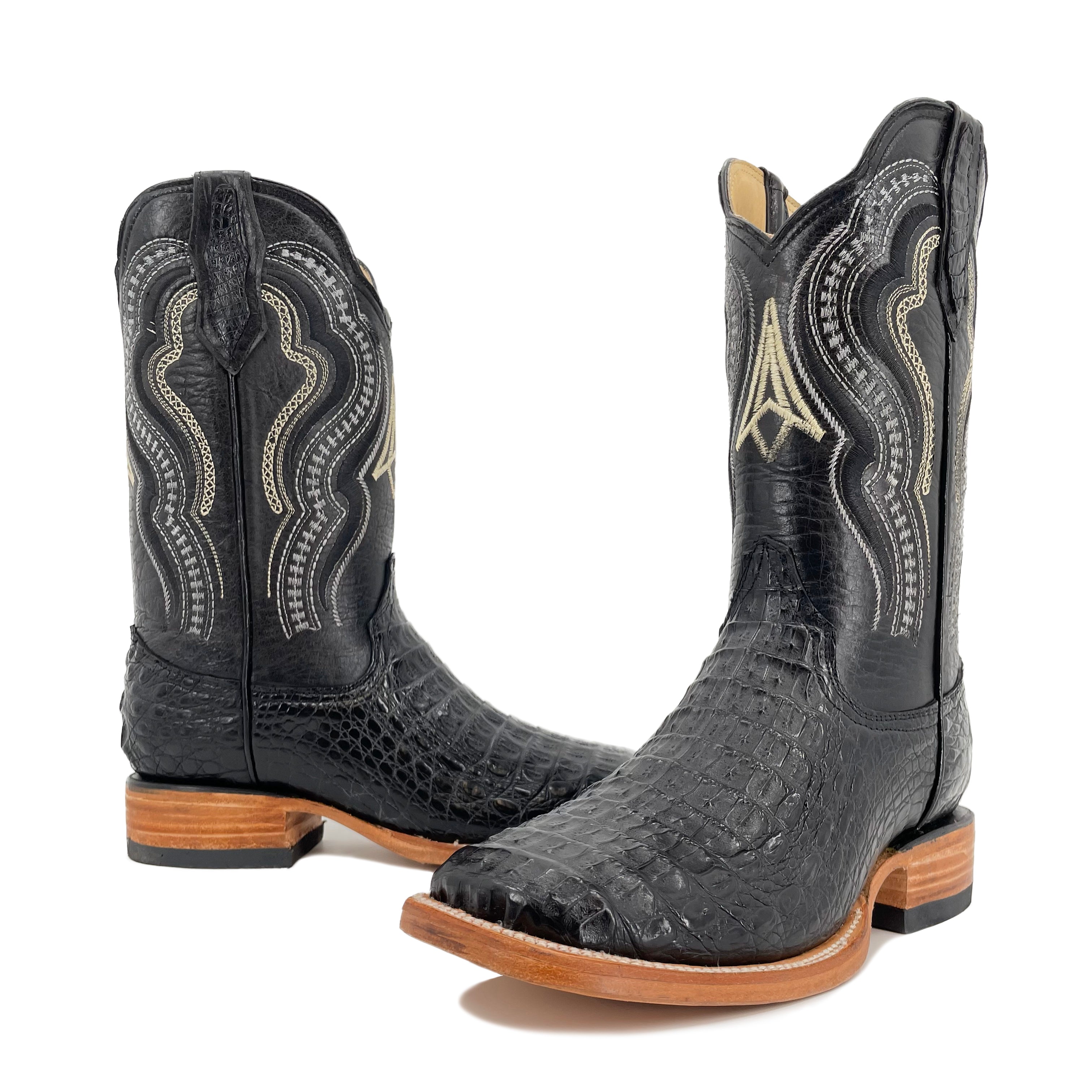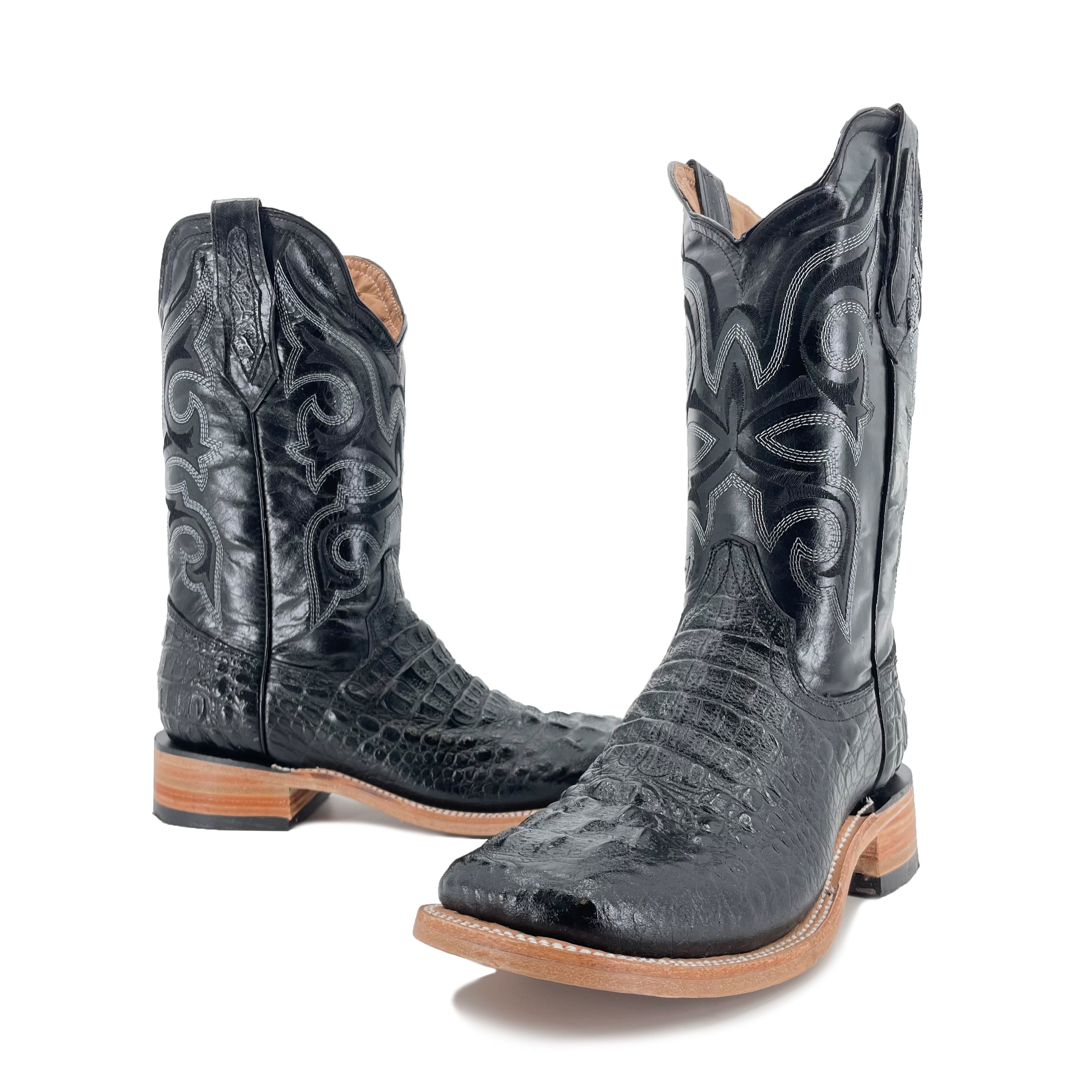 Men's Bulldog Exotic Leather Print Boots - Caiman Black