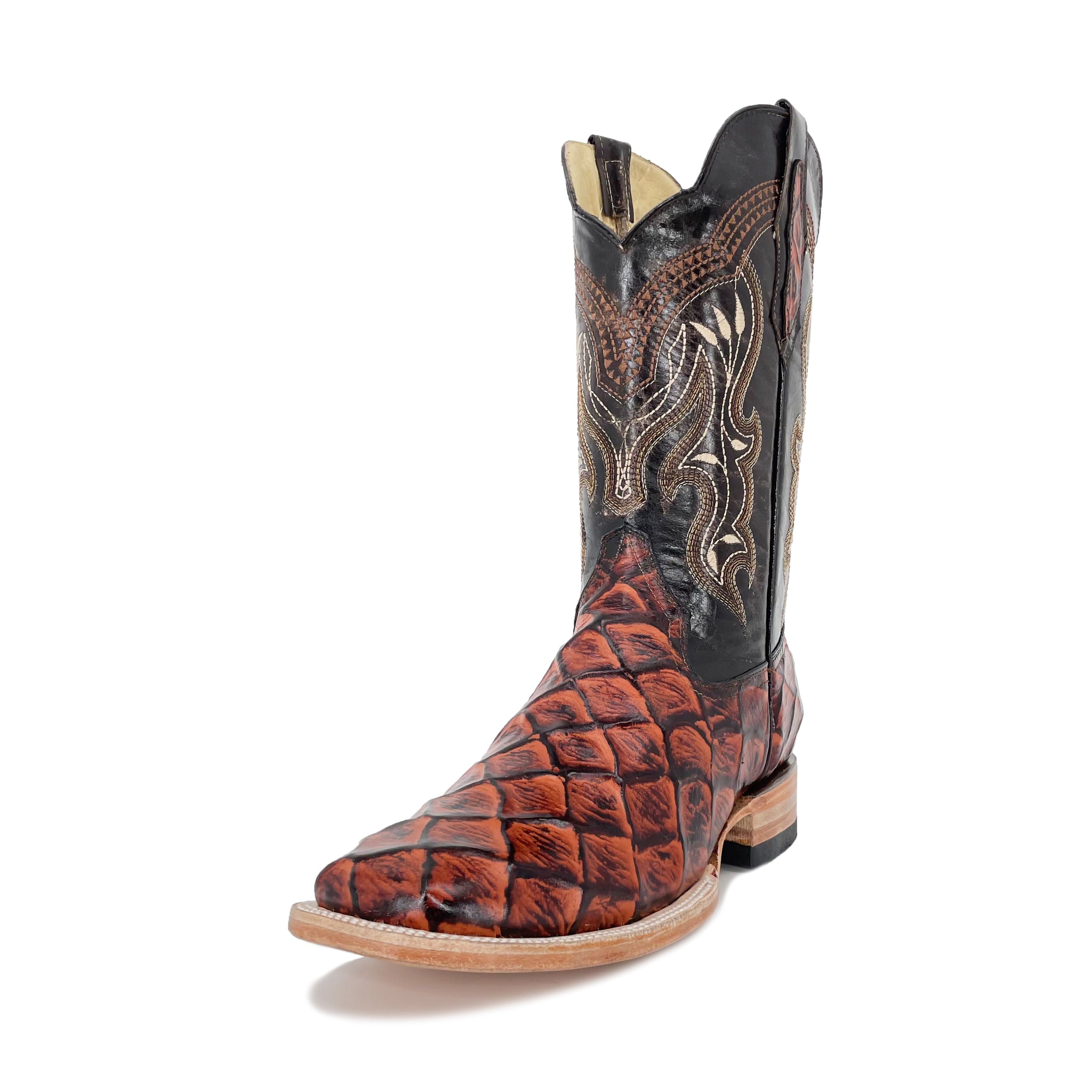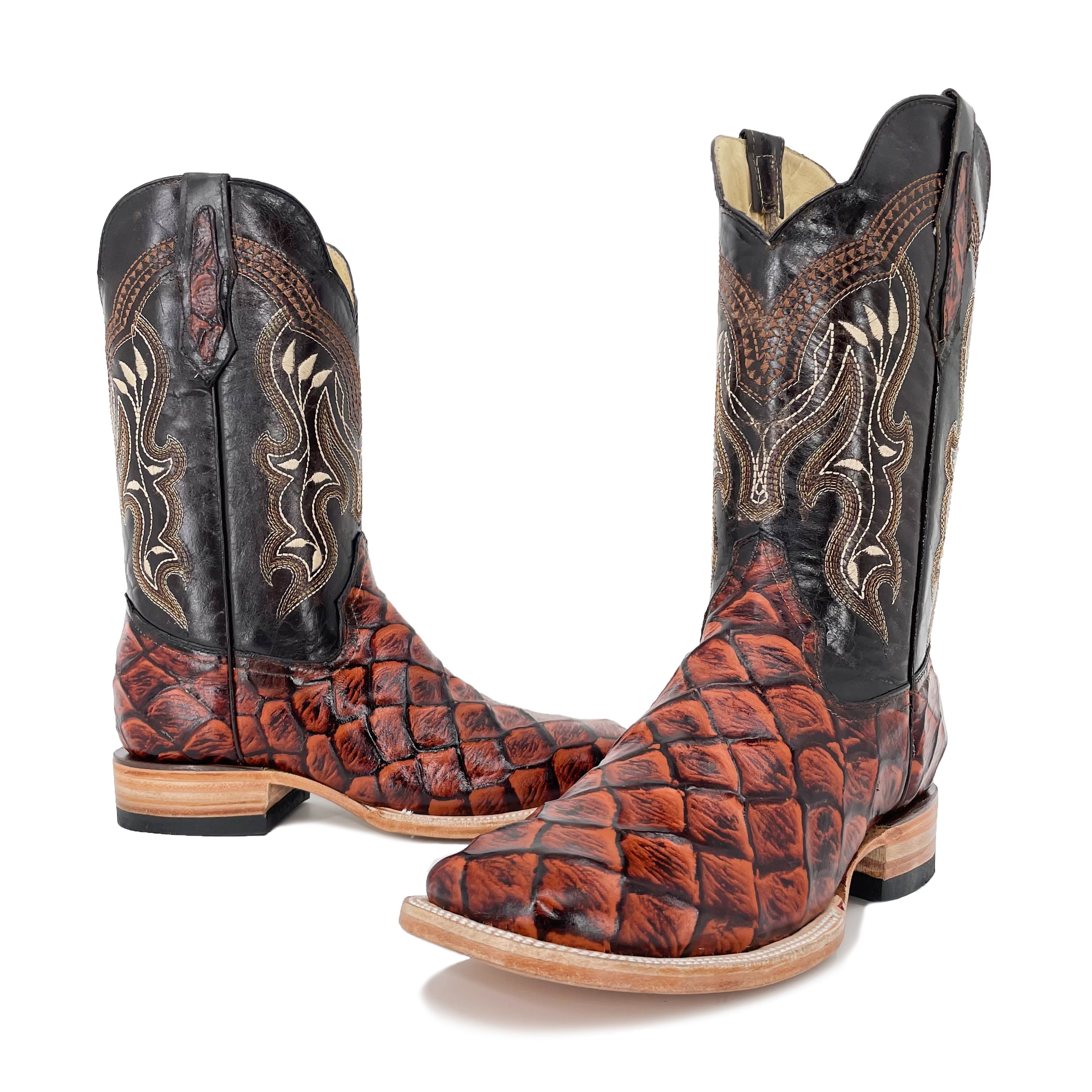 Men's Bulldog Exotic Leather Print Boots - Pirarucu Shedron