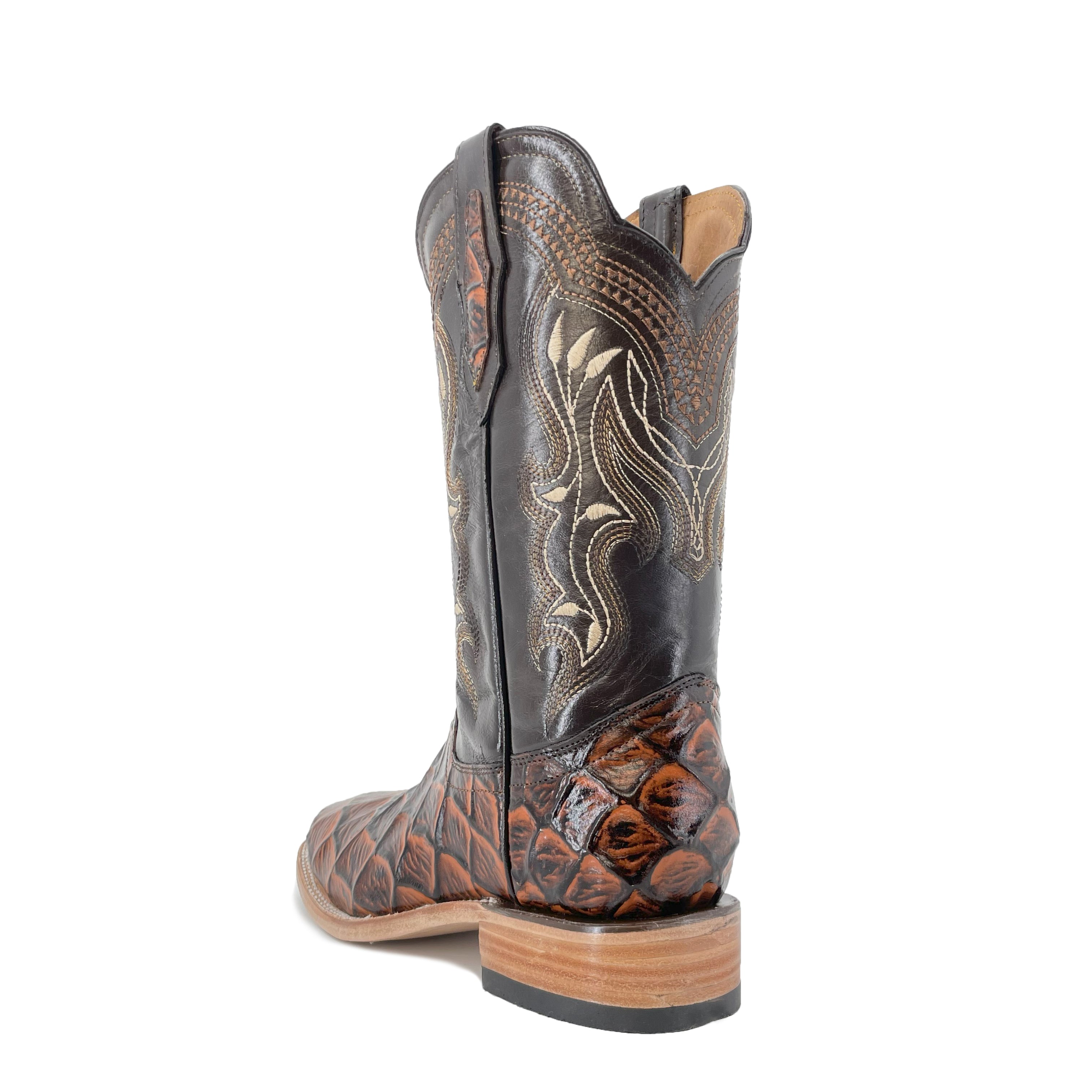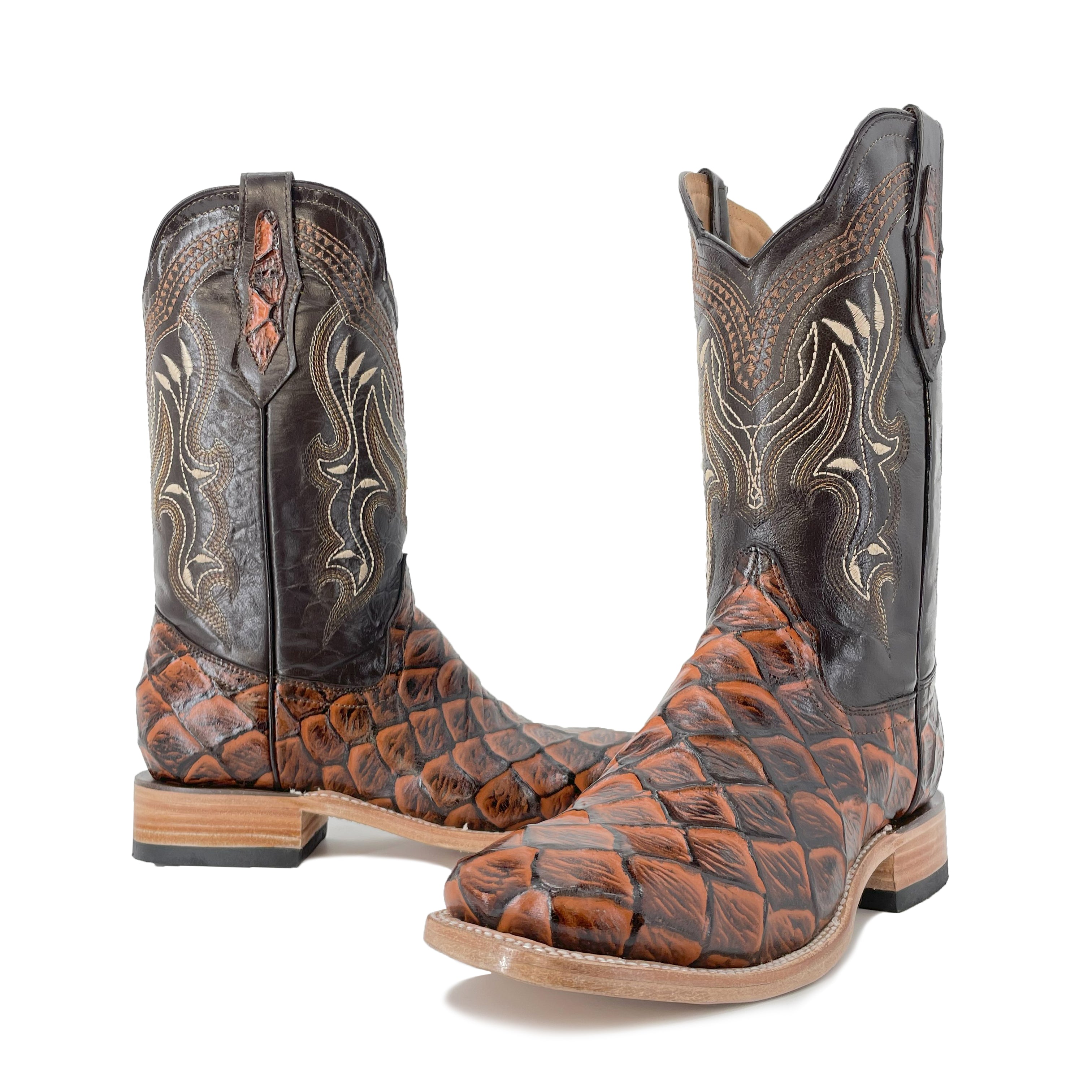 Men's Bulldog Exotic Leather Print Boots - Pirarucu Cognac Rustic