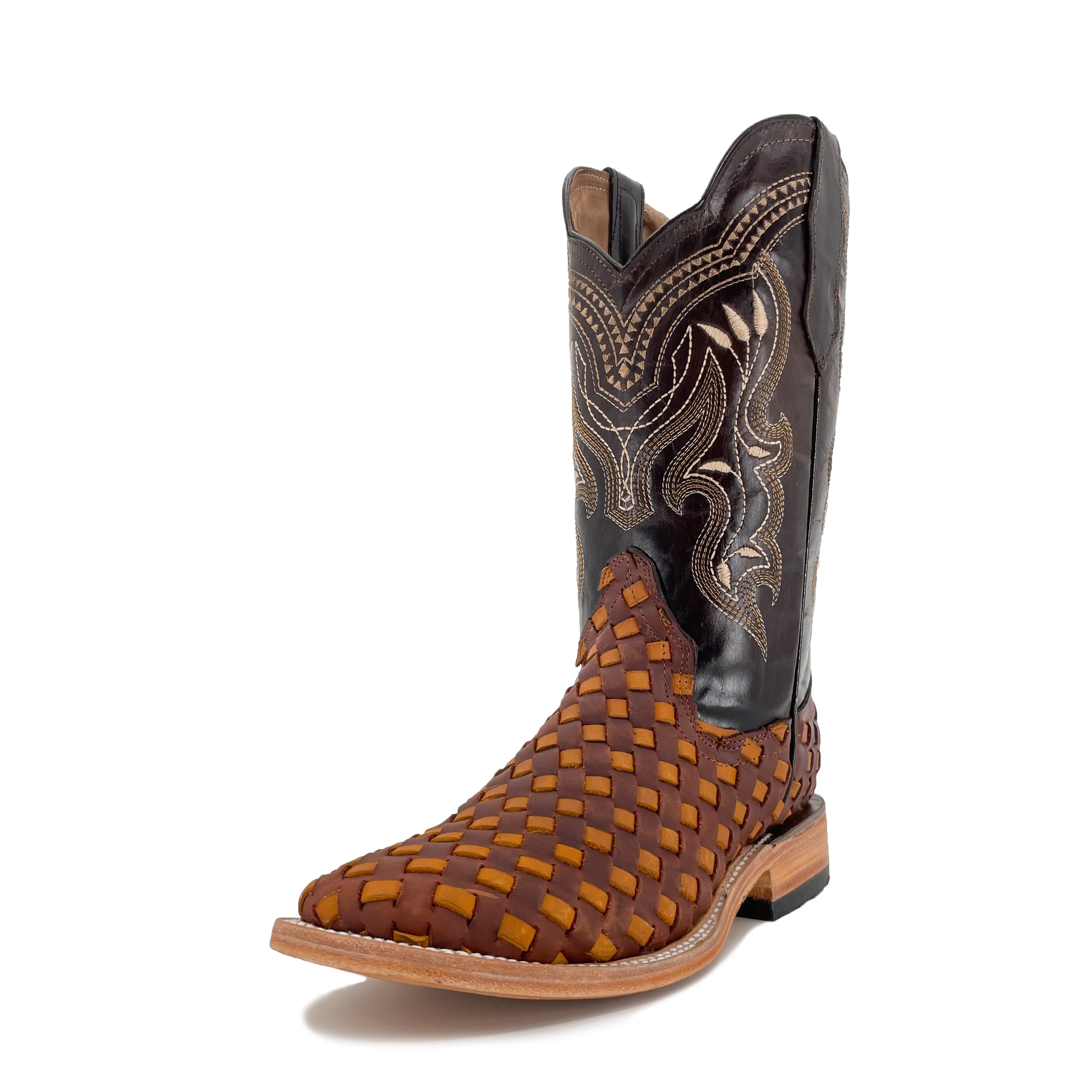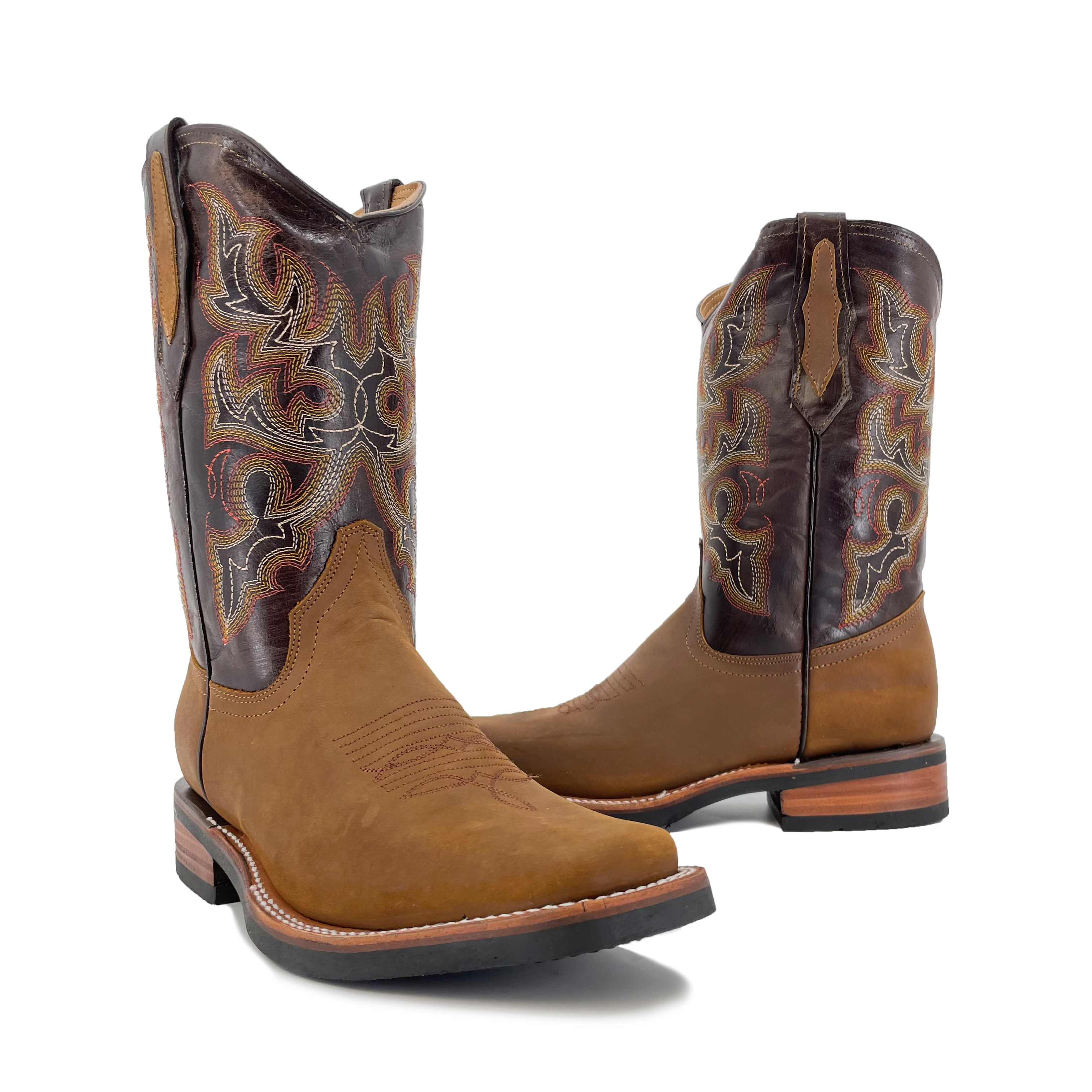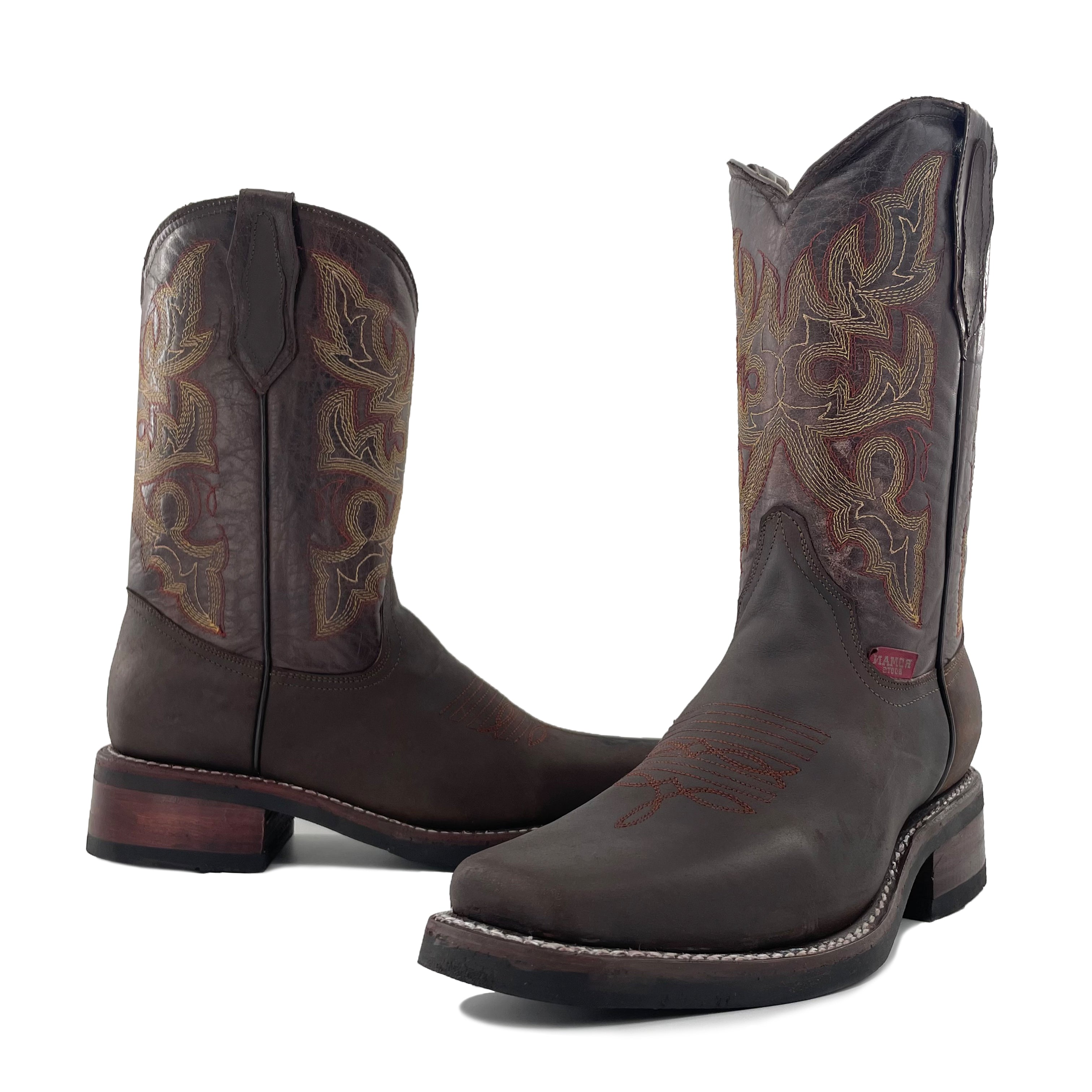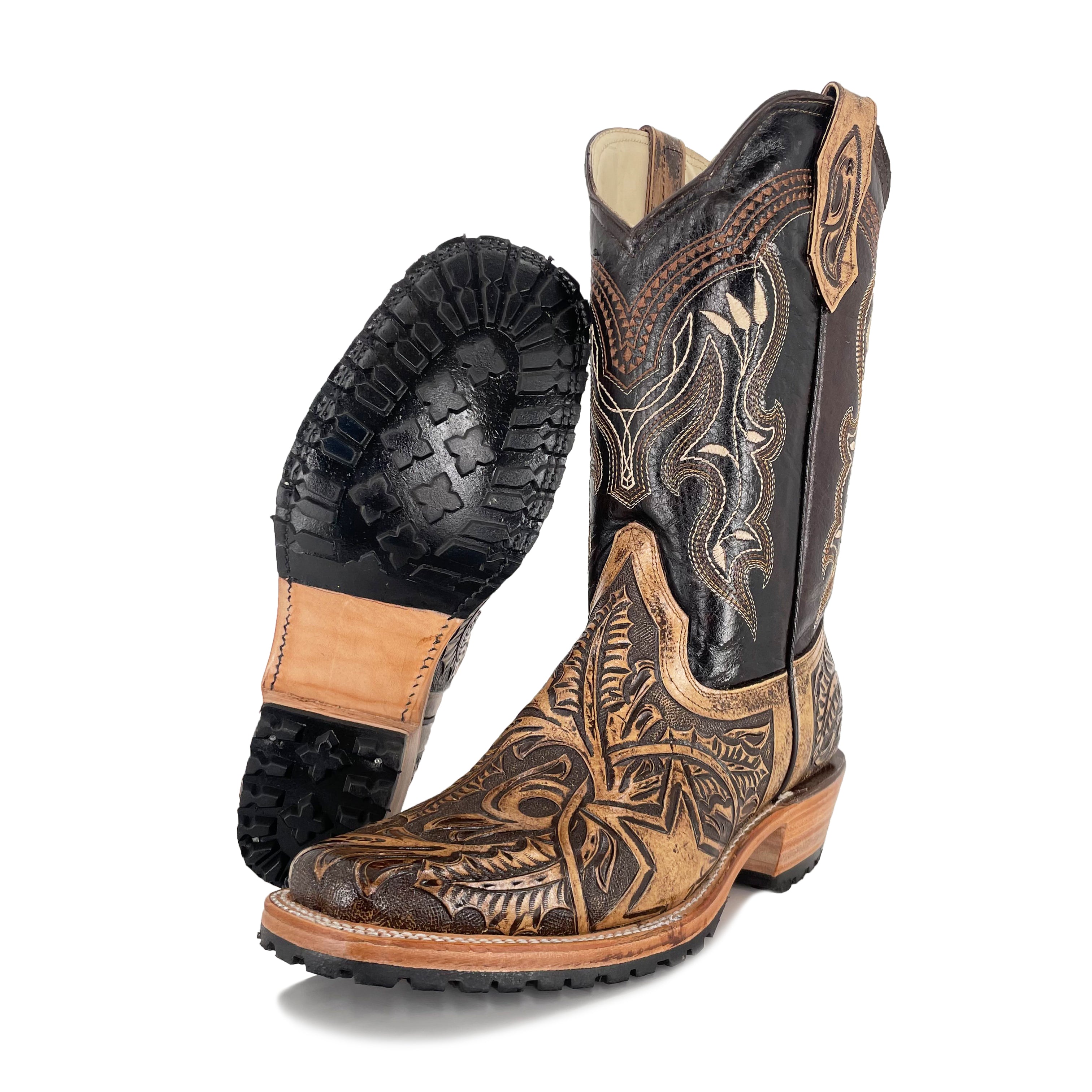 Men's Boots Hand Tooled Square Toe - Bull Neck Brown