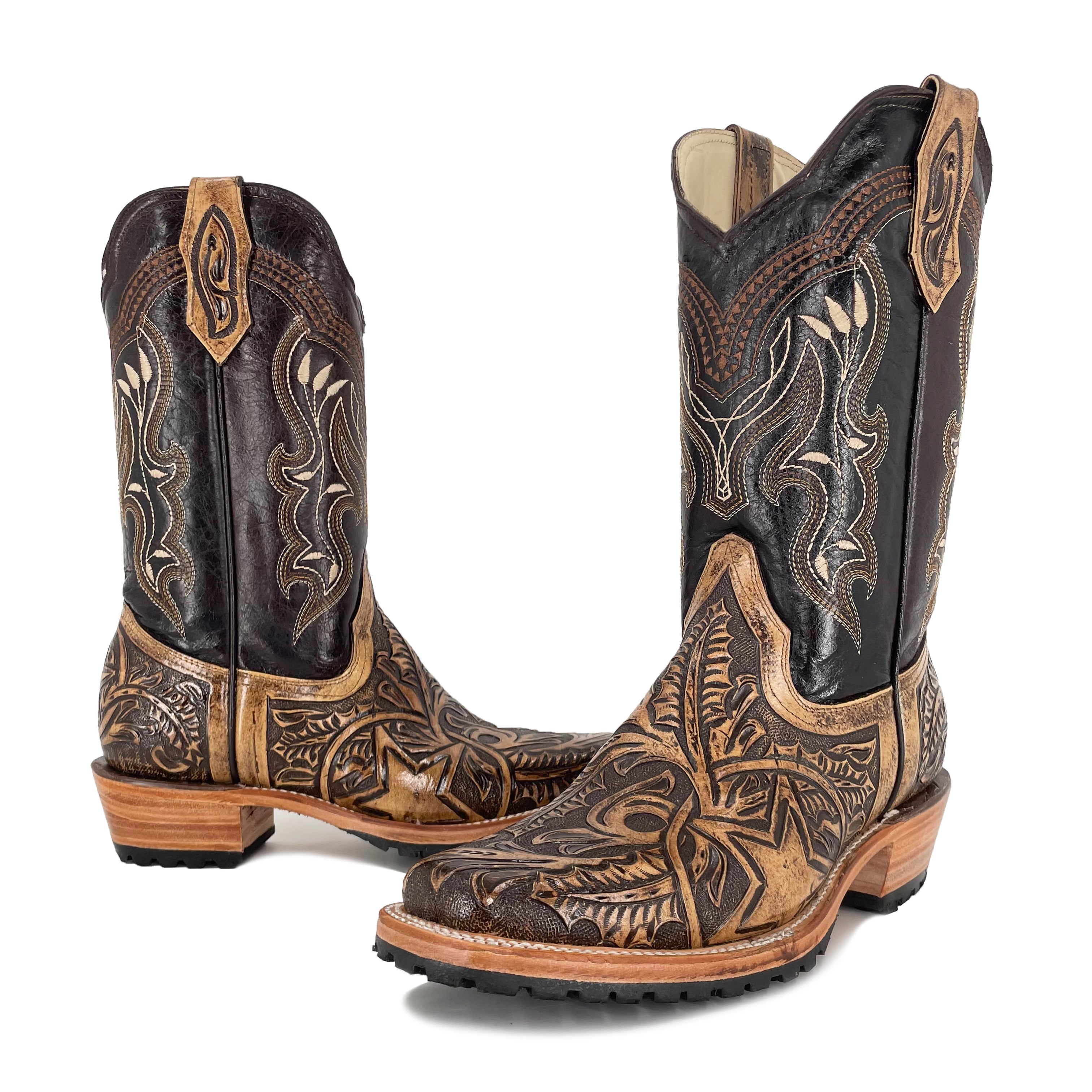 Men's Rodeo Handtooled Boots - Lone Star Rustic Brown