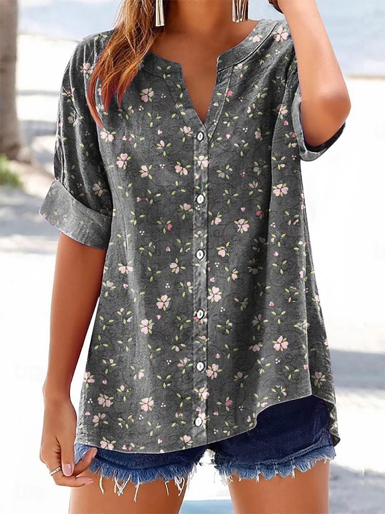 Women's Floral Pattern Art Print Casual Short Sleeve Comfortable Cotton Shirt