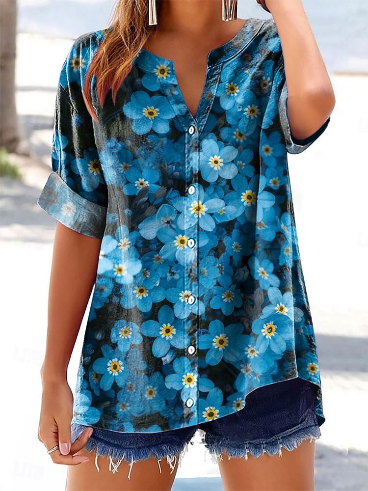 Women's Floral Pattern Art Print Cotton Linen Casual Shirt