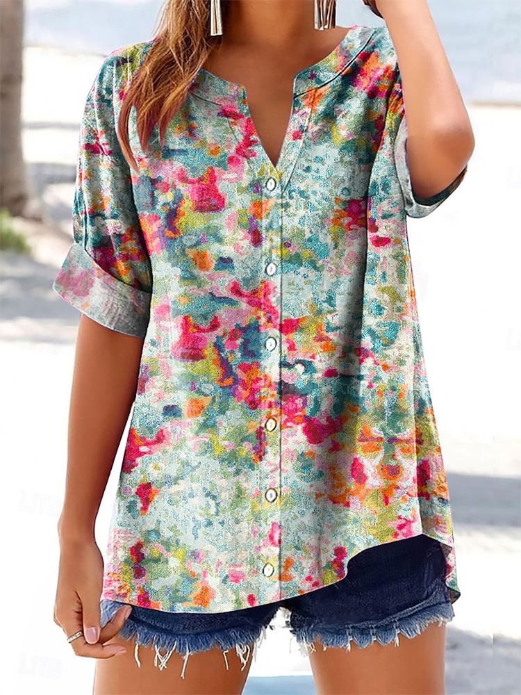Women's Colorful Pattern Art Print Cotton Linen Casual Shirt