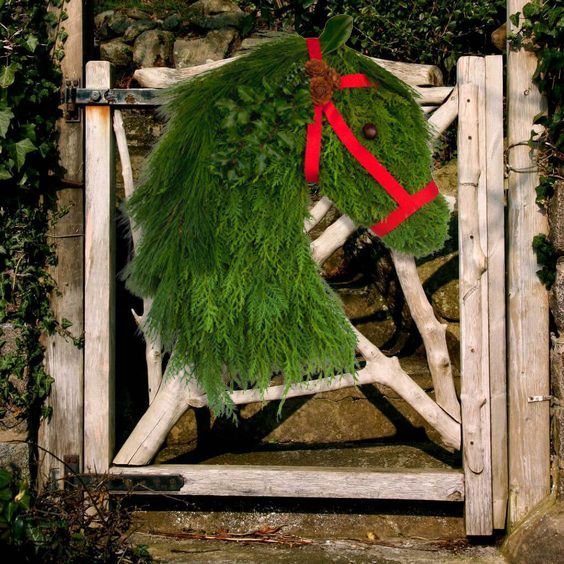 🏠 Show off your holiday equestrian style with these handmade double-horsehead Christmas wreaths, show this all winter. The Christmas decorations are great, but they can be hung throughout the winter.