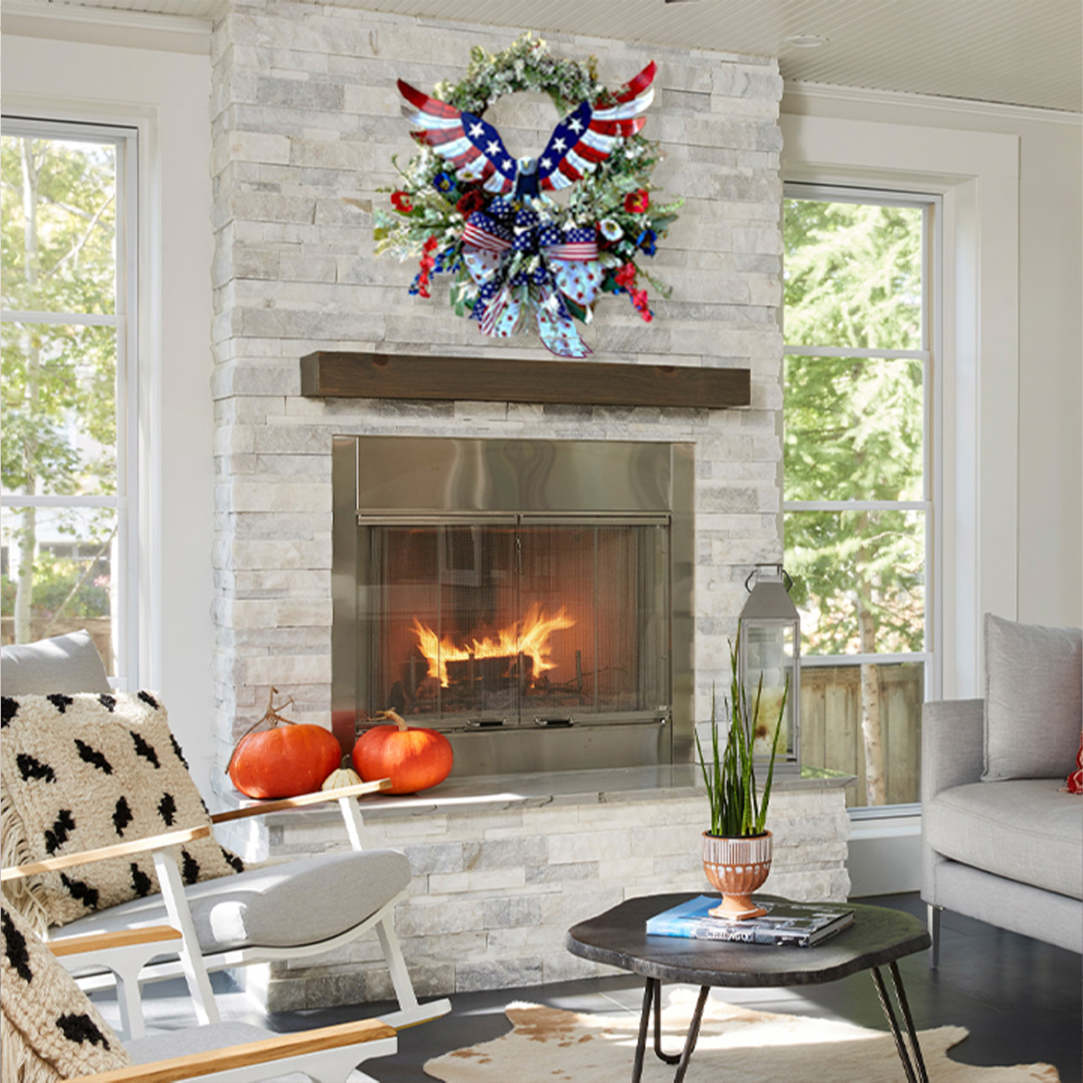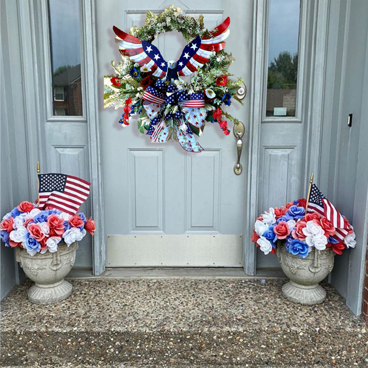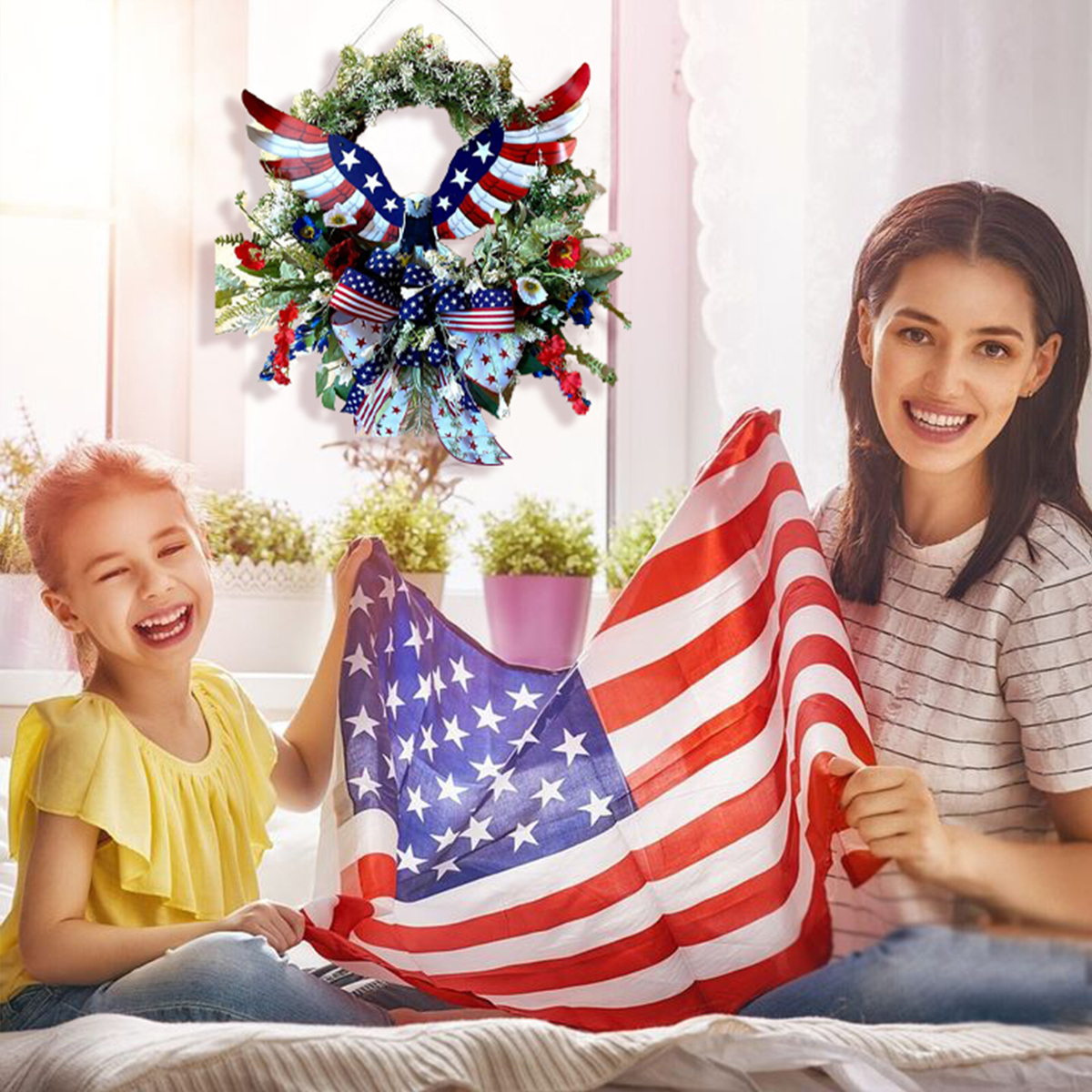 This wreath has a diameter of about 18 inches, and weighs about 2 pounds, so it can be easily hung on any door. It uses high-quality materials and meticulous craftsmanship to ensure that each wreath can withstand the wind and rain. Its color is red, white, and blue, echoing the American flag, while also giving a refreshing and lively feeling.
