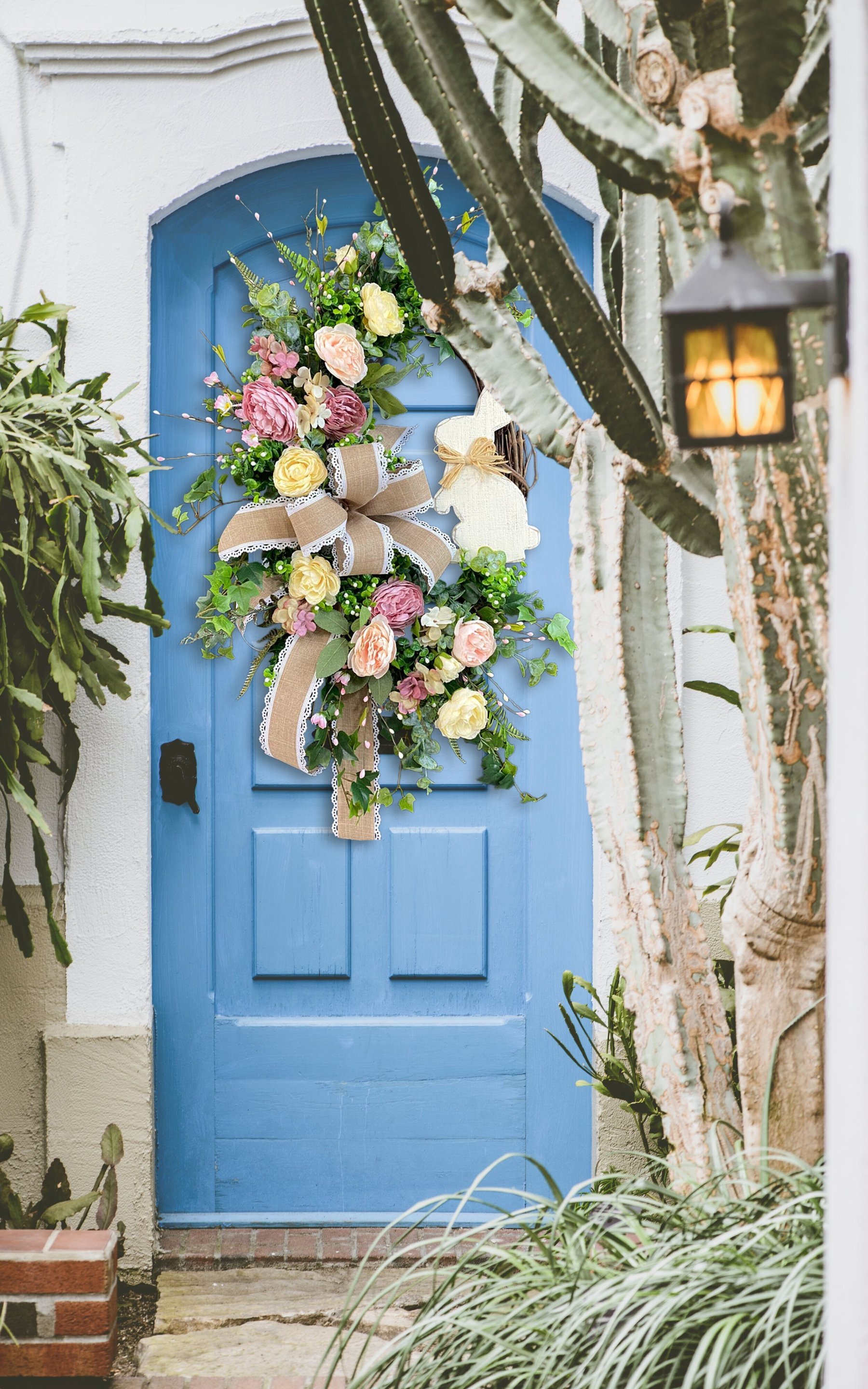 🍄Pastel tones, relaxing feelings, ring in Spring with this delicate design, a mixture between boho, cottage and farmhouse styles.🐰Elegant and Romantic French Country Easter Bunny Wreath that is beautifully detailed for a lovely finishing touch to your Easter and Spring front door decor.