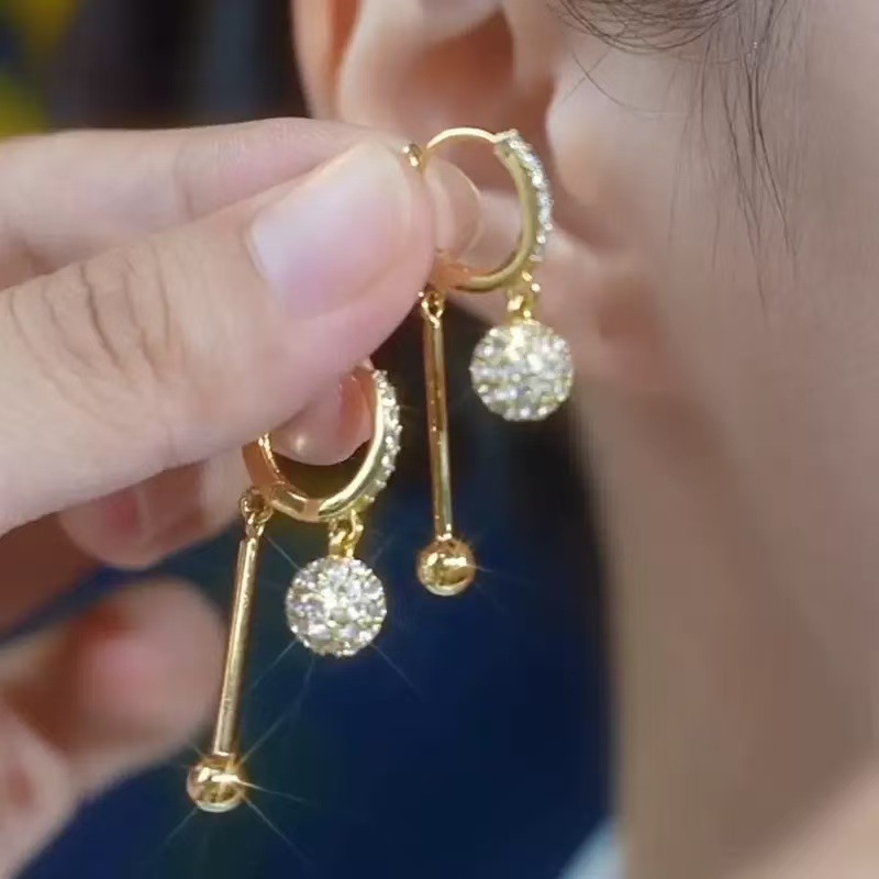 All-match gold diamond ball earrings A Pair