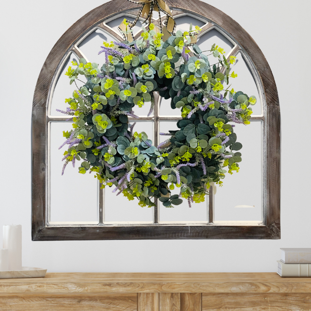 Design: Features a carefully crafted arrangement of faux eucalyptus and lavender, with an optional satin farmhouse bow, perfect for adding a touch of rustic charm to any decor style.