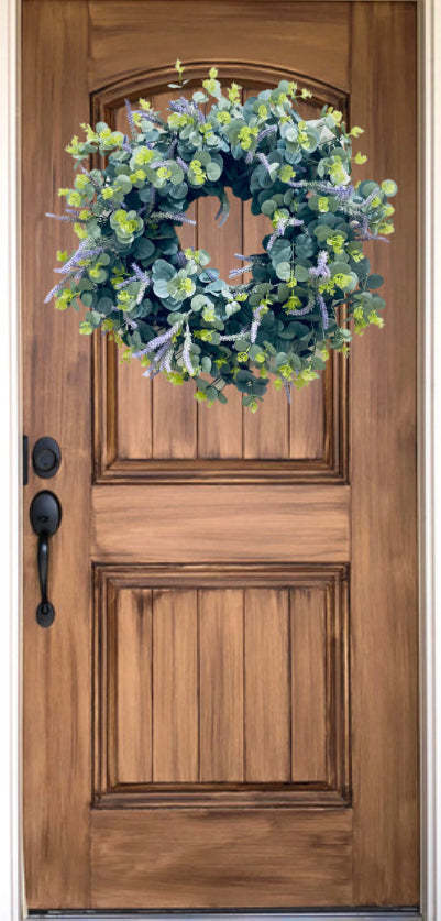 Eucalyptus Wreath with Lavender - Fabric Backing with Satin Bow