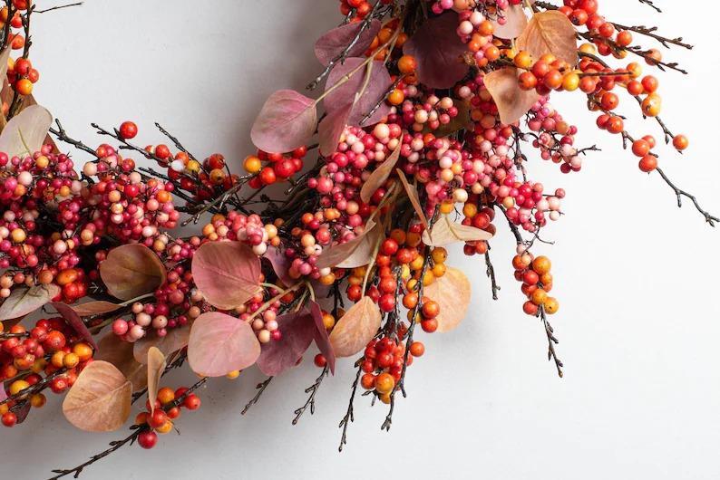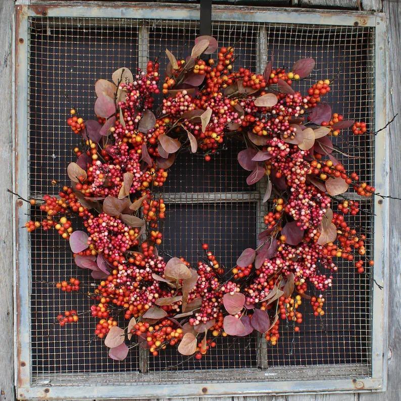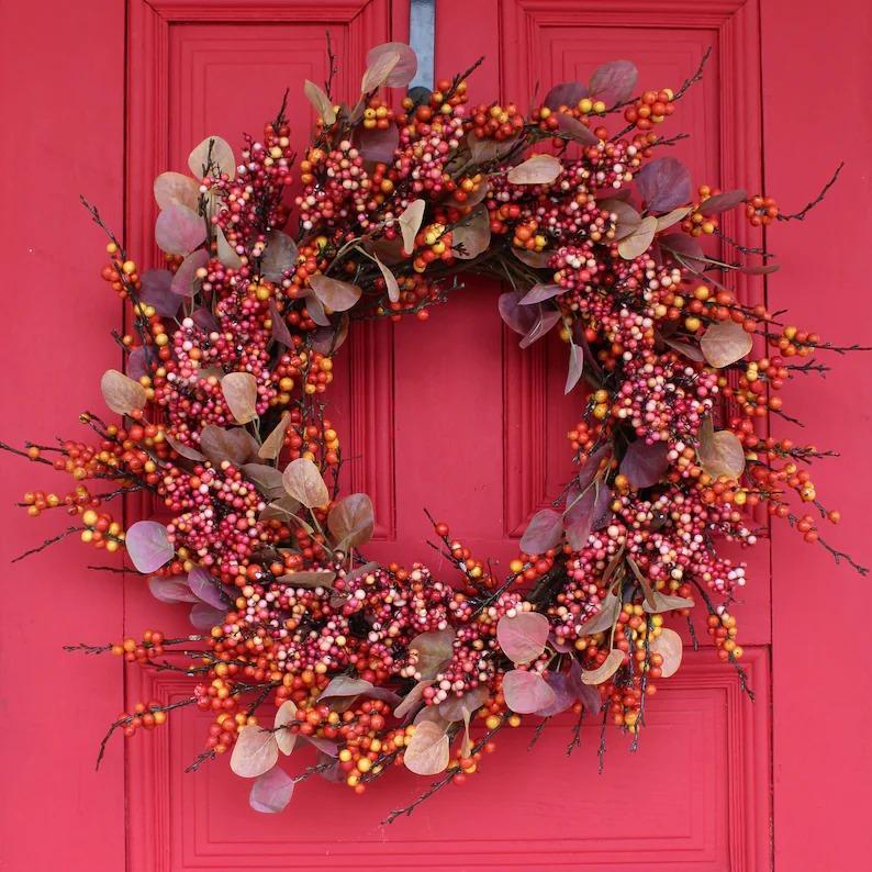 Fall Harvest Berry Explosion & Autumn Silver Dollar Eucalyptus Front Door Wreath