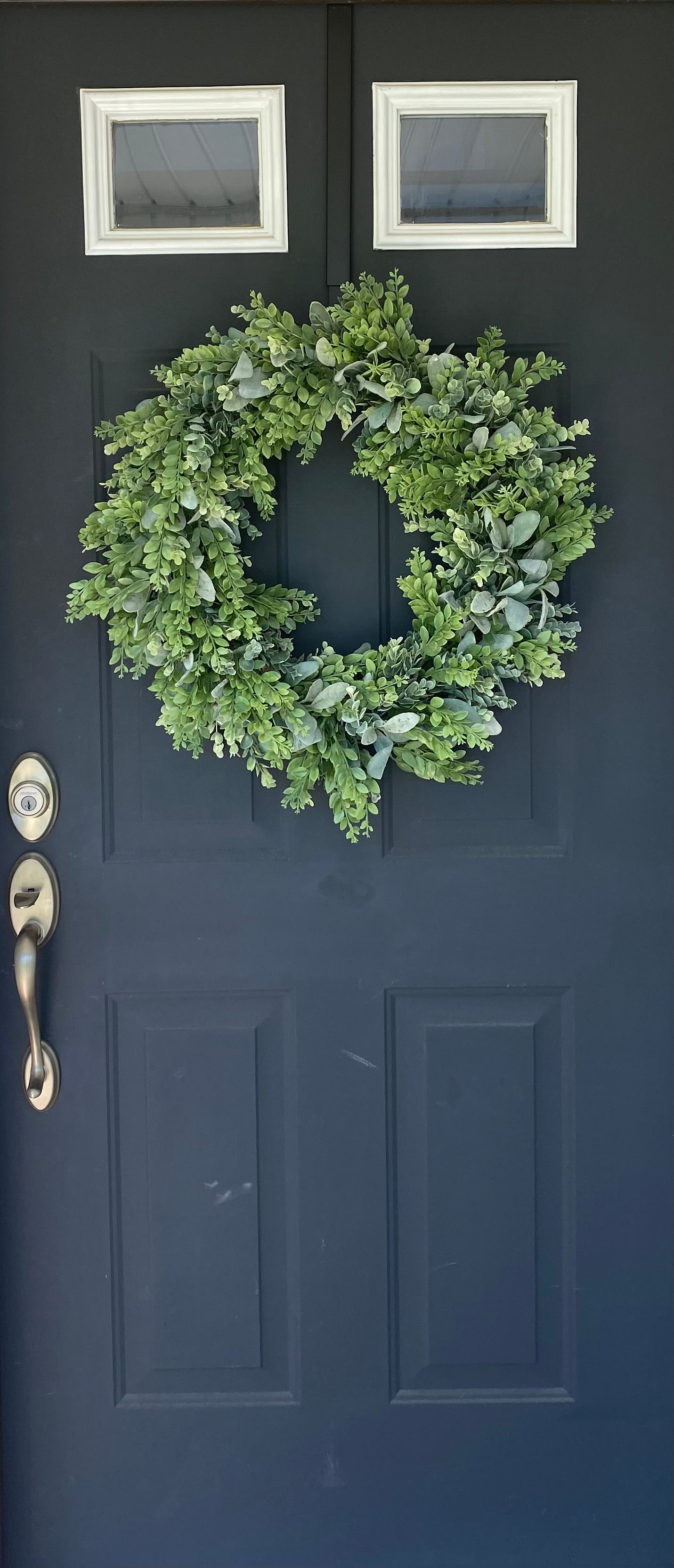 Effortlessly transform your space with our Handcrafted Frosted Eucalyptus and Lamb’s Ear Wreath. Whether it's greeting guests at the door or enhancing your interior decor, this timeless piece adds a touch of greenery and farmhouse charm without the hassle. Perfect for those seeking a fresh, inviting look, this versatile wreath brings warmth and elegance to any room, instantly elevating your home's aesthetic.