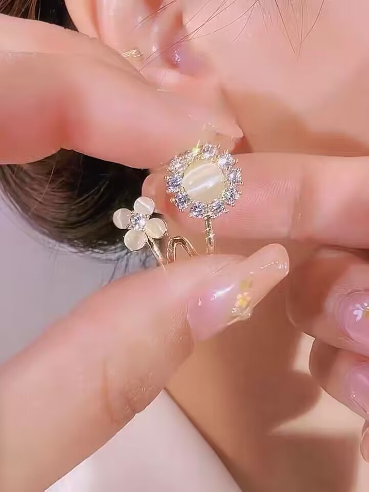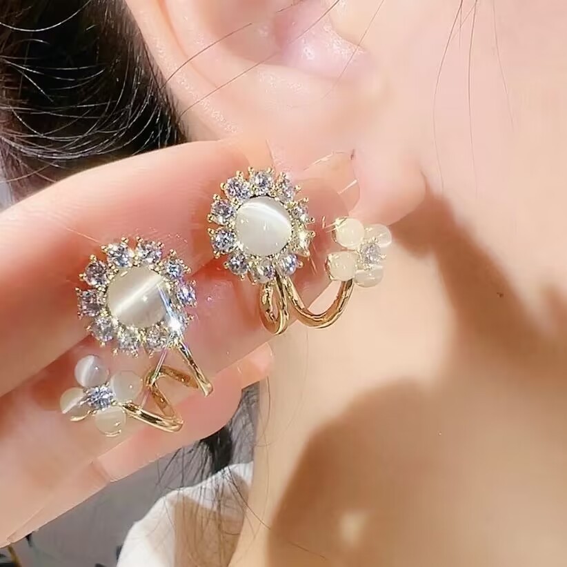 Fashionable and high-end cat's eye flower earrings A Pair