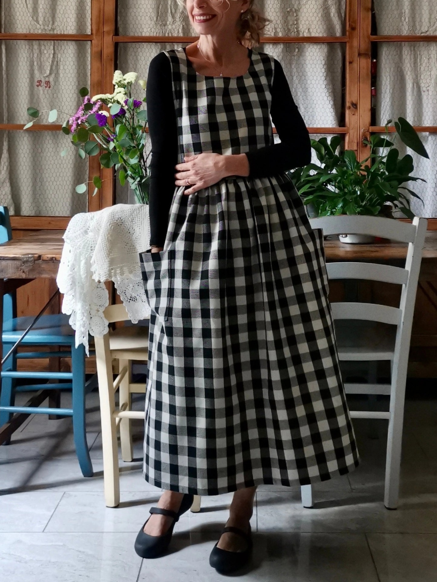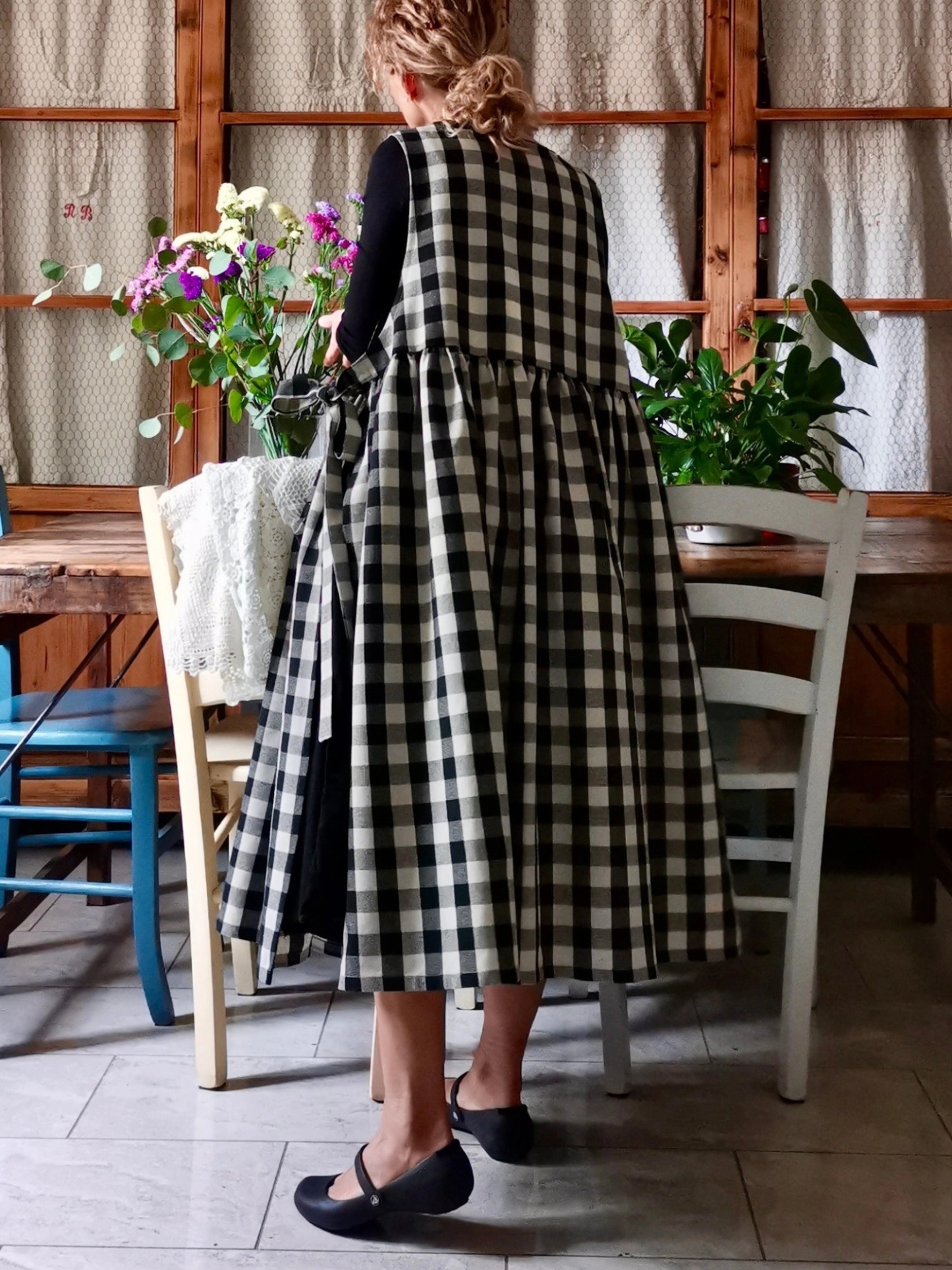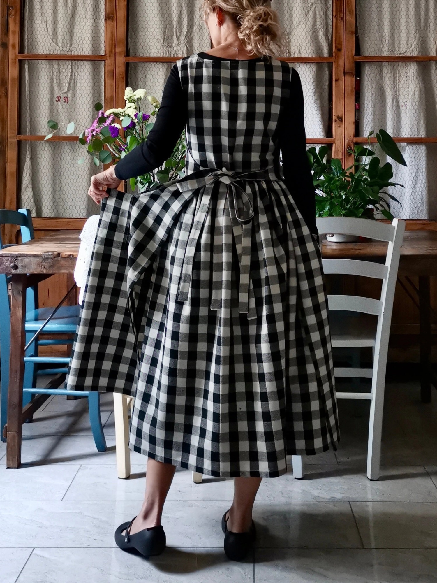 The Black Checked Apron (Ref. 396) is a professionally crafted kitchen essential that combines timeless style with practical functionality for the discerning home cook or culinary professional. Featuring a classic black and white checked pattern that complements any kitchen decor, this durable apron is constructed from high-quality materials designed to withstand daily use while maintaining its crisp appearance. The thoughtfully designed coverage provides comprehensive protection for clothing during food preparation, cooking, and cleanup activities, while adjustable ties ensure a comfortable and secure fit for users of various sizes. Its versatile design makes it equally suitable for home cooking enthusiasts, professional chefs, or anyone engaged in kitchen activities who values both protection and style. The neutral color palette effectively conceals stains and spills while the checked pattern adds a touch of traditional charm that aligns with American culinary aesthetics. This apron represents an ideal balance of form and function, making it an indispensable addition to any well-equipped kitchen environment where quality and reliability are paramount.