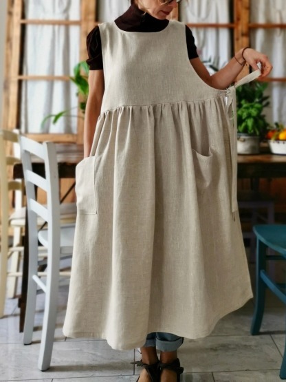 This sophisticated beige cotton dress apron combines timeless elegance with practical functionality, making it an essential addition to any modern kitchen or professional culinary environment. Crafted from high-quality, breathable cotton fabric in a versatile neutral beige tone that complements any décor or wardrobe, this apron features a flattering dress-style silhouette that provides comprehensive coverage while maintaining a polished, professional appearance. The durable cotton construction ensures long-lasting performance through repeated washing and daily use, while the classic beige color effortlessly conceals minor stains and maintains its sophisticated look throughout extended wear. Designed with the discerning American consumer in mind, this apron seamlessly transitions from home cooking and baking projects to professional food service environments, offering reliable protection for clothing while delivering the refined aesthetic that today's style-conscious individuals demand. The versatile design makes it equally suitable for kitchen duties, crafting projects, gardening activities, or any task requiring protective yet fashionable coverage, establishing it as an indispensable tool for those who refuse to compromise between functionality and style.