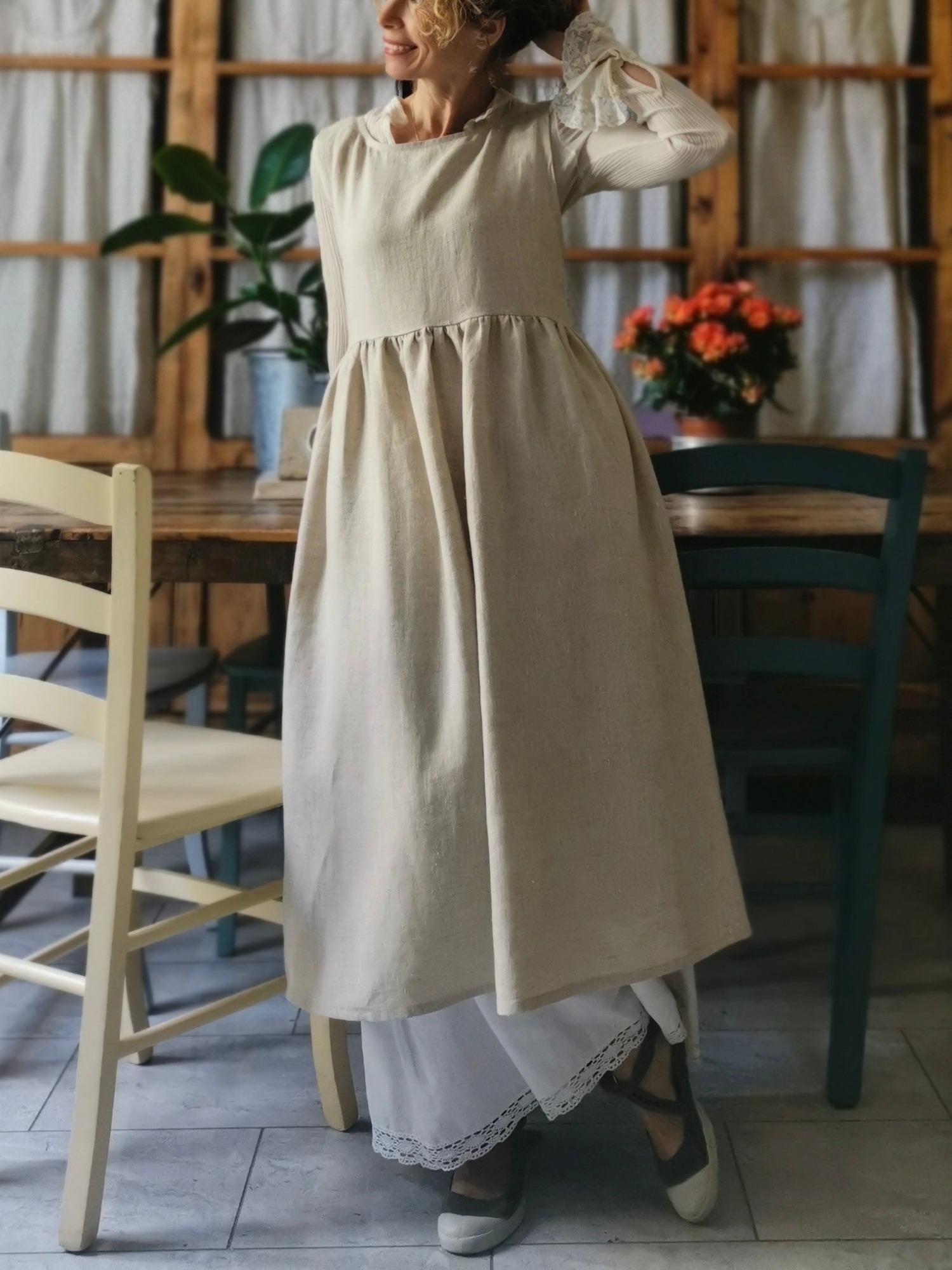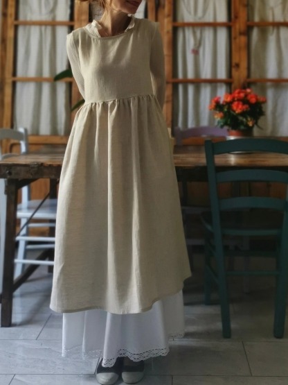 Beige Cotton Apron with Brown Ties