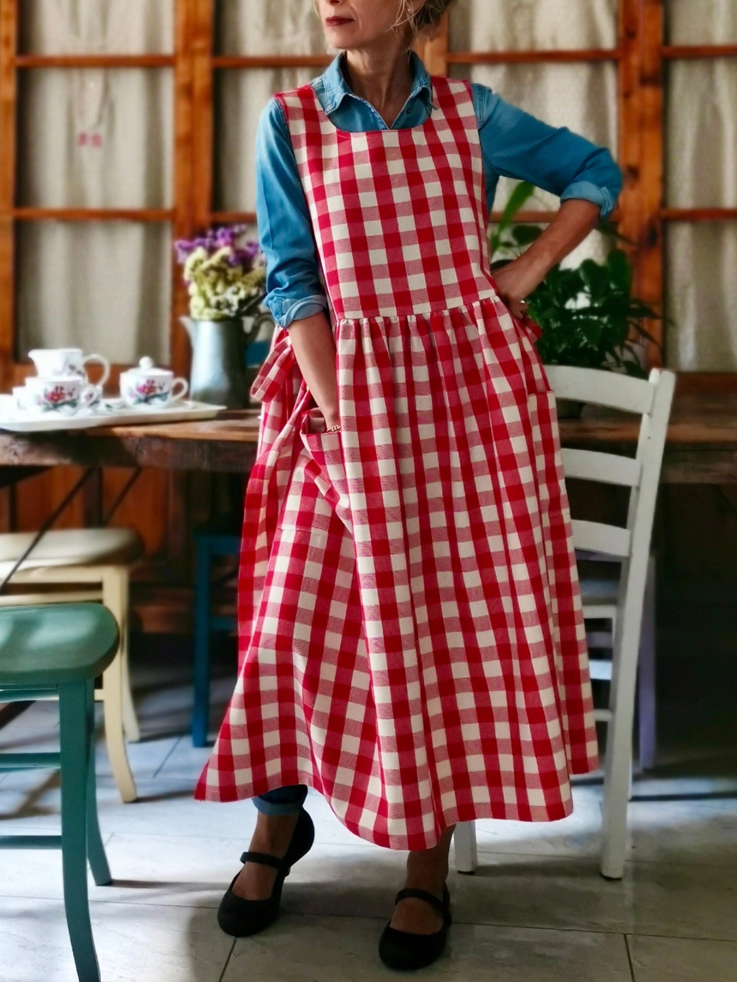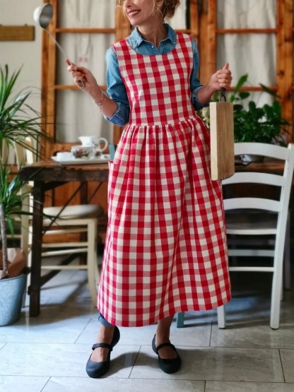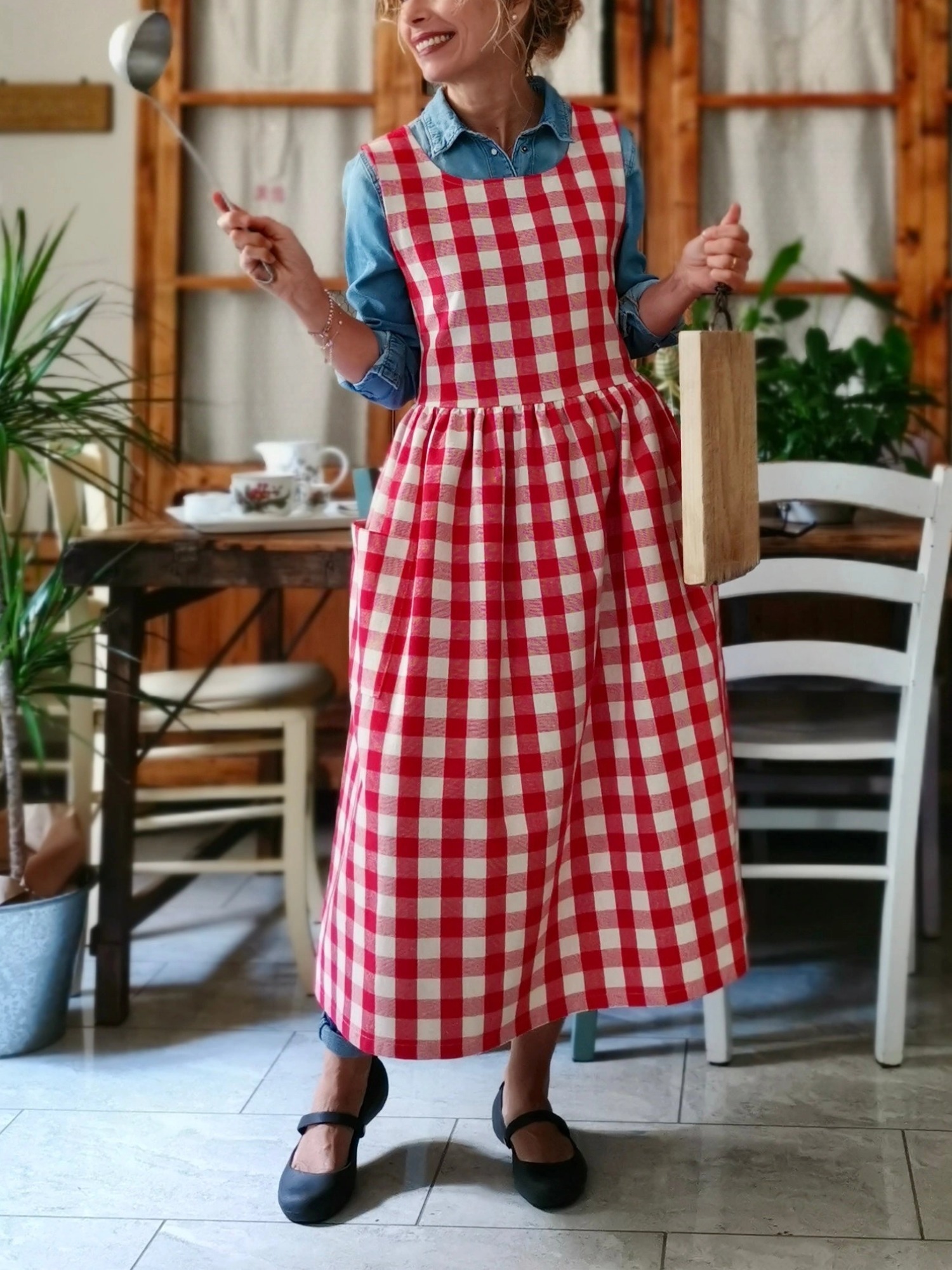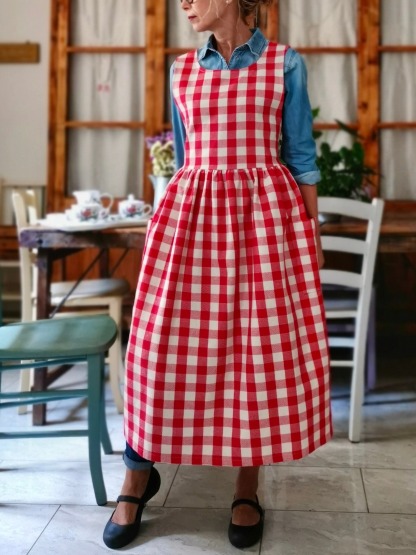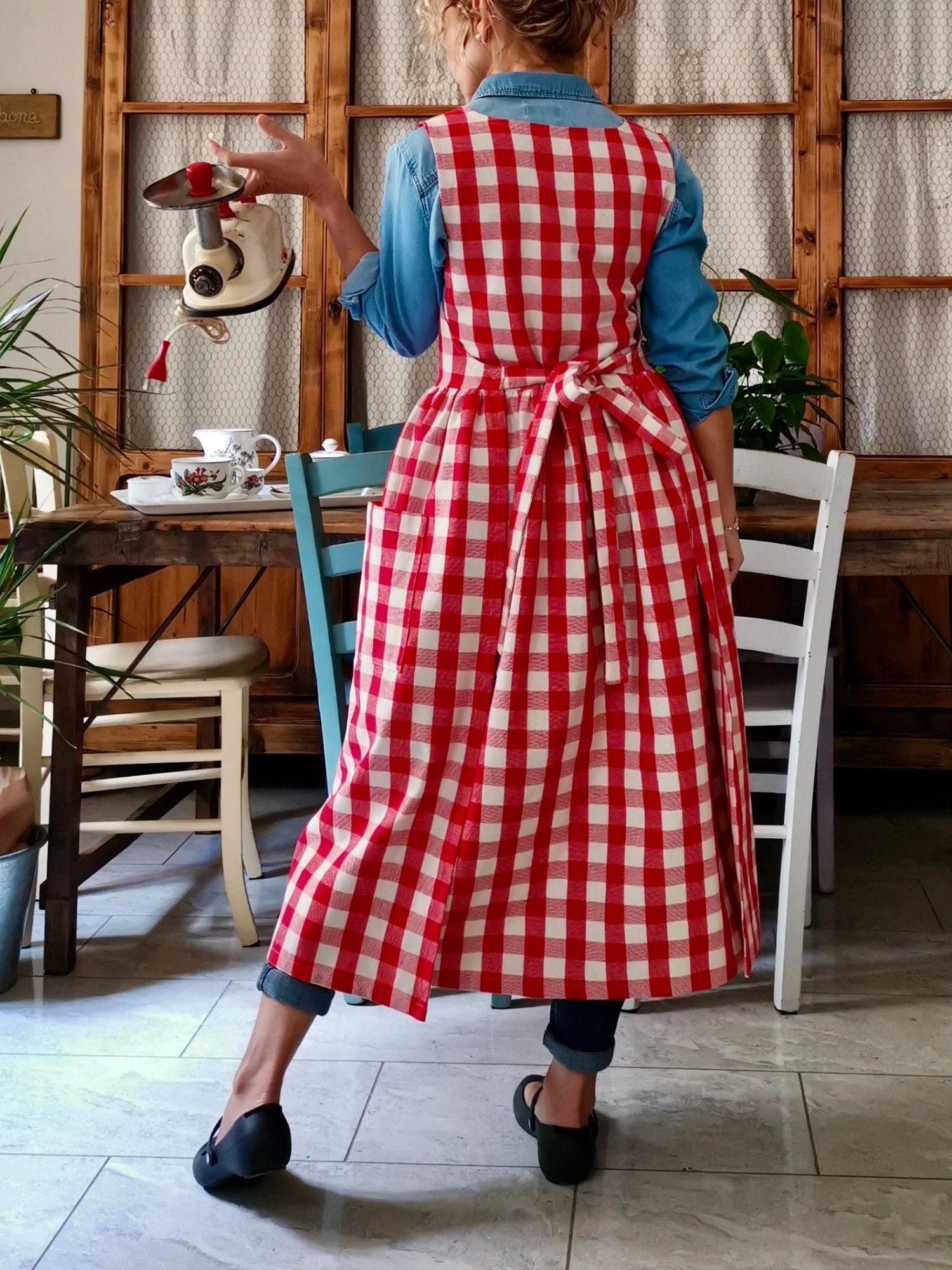 This Red Check Cotton Apron combines traditional craftsmanship with modern functionality, featuring a classic checkered pattern in vibrant red that adds a timeless charm to any kitchen or cooking environment. Constructed from high-quality, durable cotton fabric, this apron provides excellent protection against spills, stains, and splatters while maintaining breathability and comfort during extended use. The premium cotton material ensures easy care and maintenance, being machine washable and resistant to fading, making it ideal for frequent use in busy American households where practicality and style are equally valued. Designed with adjustable neck and waist ties, this apron accommodates various body sizes and provides a secure, comfortable fit for both professional chefs and home cooking enthusiasts. The generous coverage area protects clothing effectively while allowing full range of motion during food preparation, baking, grilling, or any culinary activities. Whether you're hosting a backyard barbecue, preparing a family dinner, or engaging in holiday baking traditions, this Red Check Cotton Apron serves as both a functional kitchen essential and a stylish accessory that reflects the warm, welcoming atmosphere of American home cooking culture.