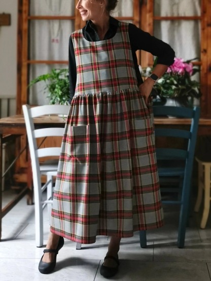 Grey and Red Tartan Apron