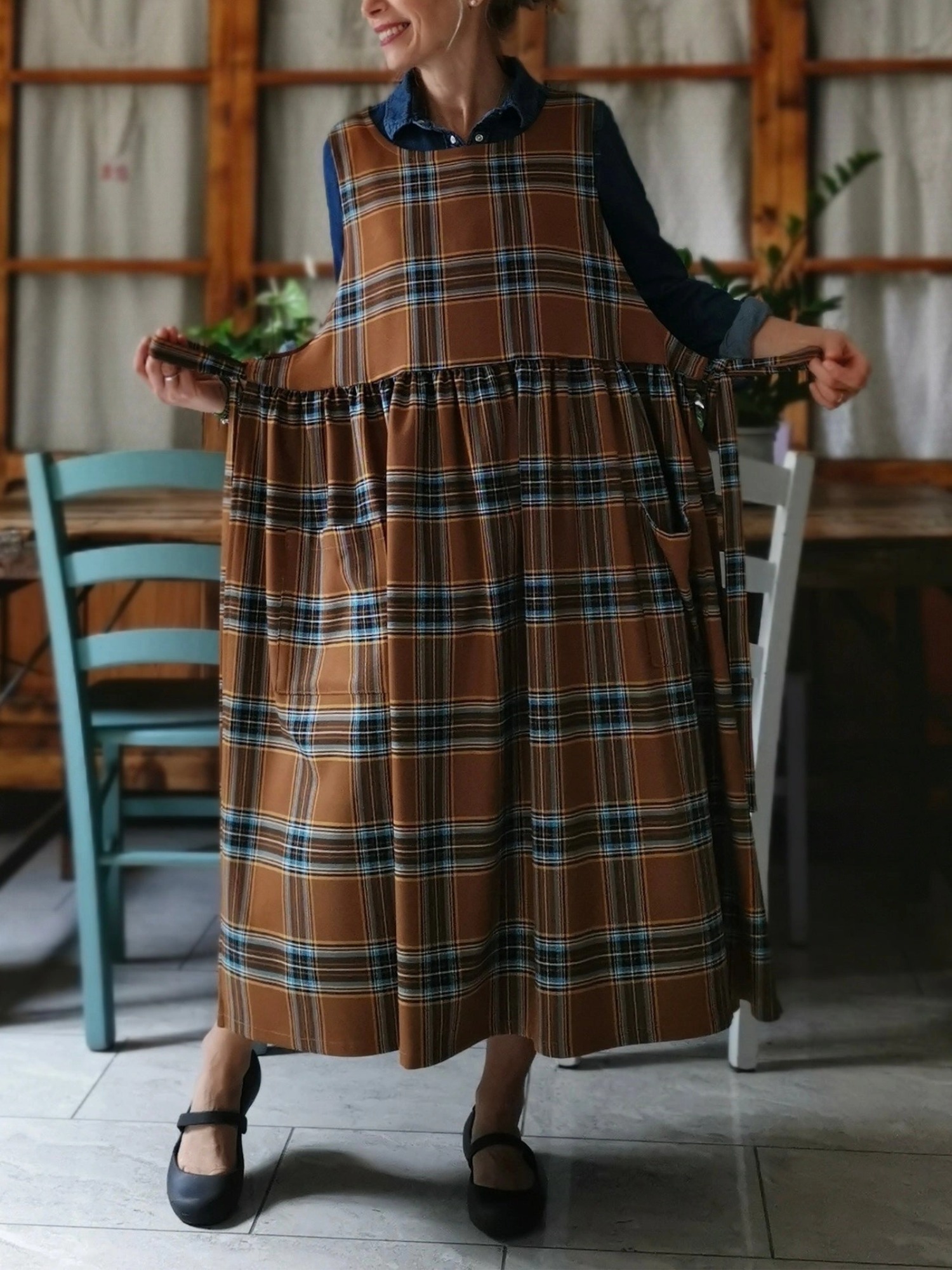 Brown and Blue Tartan Apron