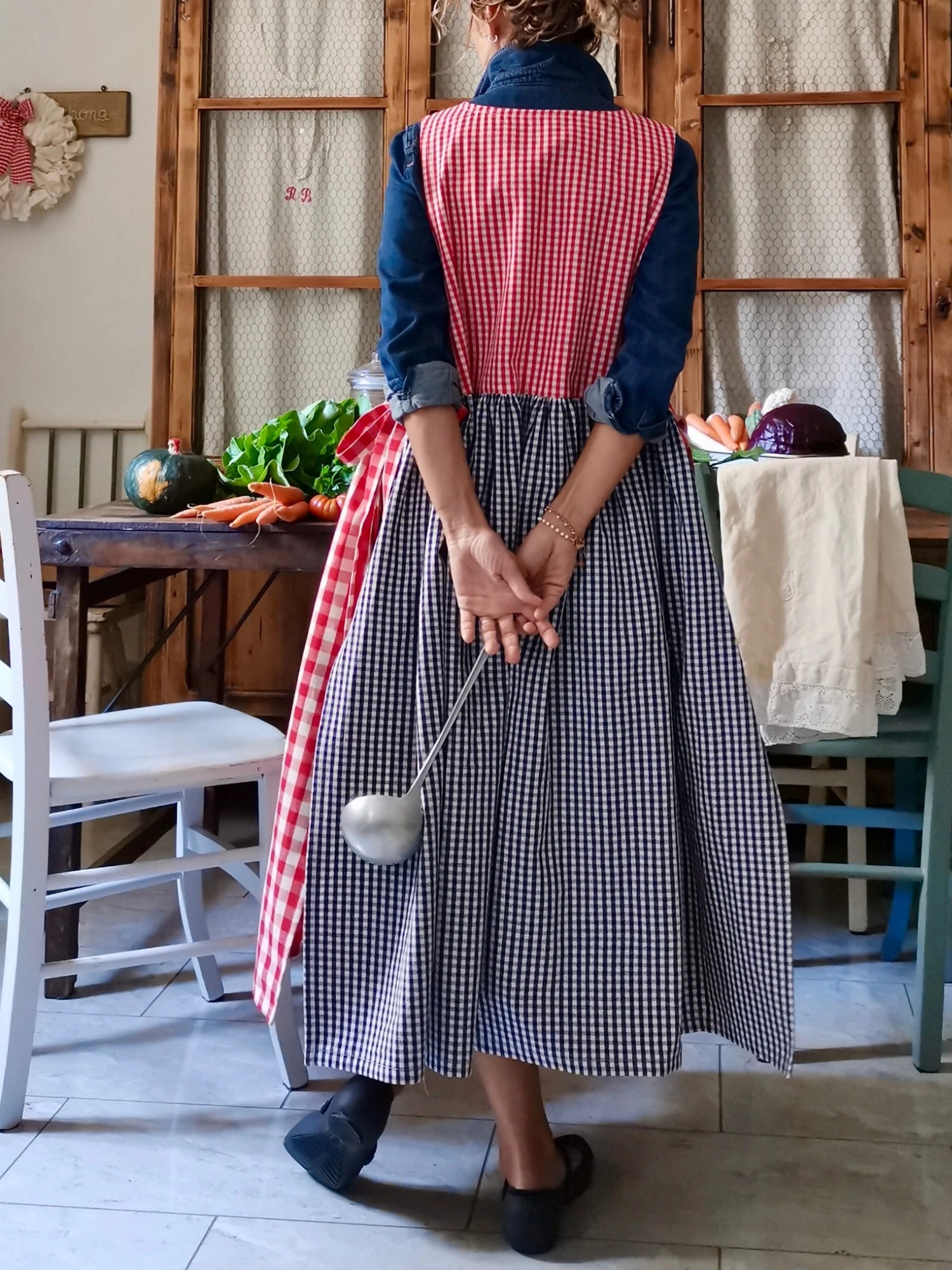 This Red and Blue Checked Patchwork Apron combines classic American styling with practical functionality, featuring a timeless red and blue checkered pattern that evokes traditional country kitchen aesthetics while providing superior protection during cooking and baking activities. Crafted with durable, high-quality materials, this apron showcases meticulous patchwork construction that ensures long-lasting wear and easy maintenance, making it an essential addition to any home cook's culinary arsenal. The generous coverage design protects clothing from spills, splatters, and stains while the adjustable neck strap and secure waist ties accommodate various body types for optimal comfort during extended kitchen sessions. Whether you're preparing holiday meals, hosting backyard barbecues, or engaging in everyday meal preparation, this versatile apron delivers both style and substance, seamlessly blending patriotic color schemes with practical kitchen utility that American households have trusted for generations. The classic checked pattern coordinates effortlessly with most kitchen décors while the patchwork detailing adds an artisanal touch that reflects quality craftsmanship and attention to detail, making this apron suitable for both casual family cooking and more formal entertaining occasions.