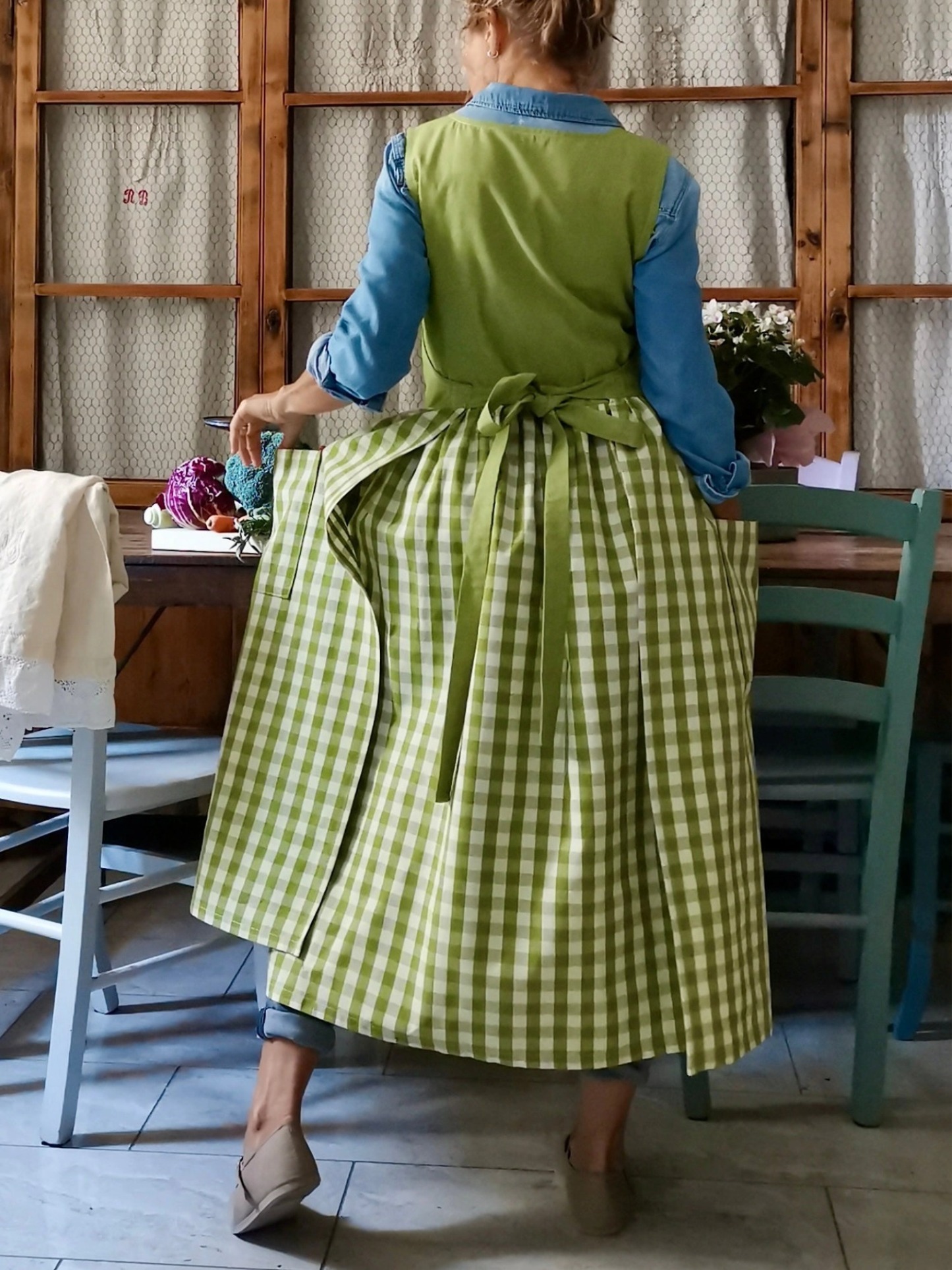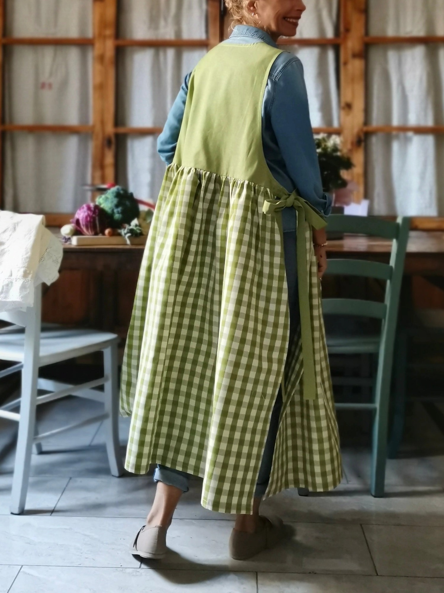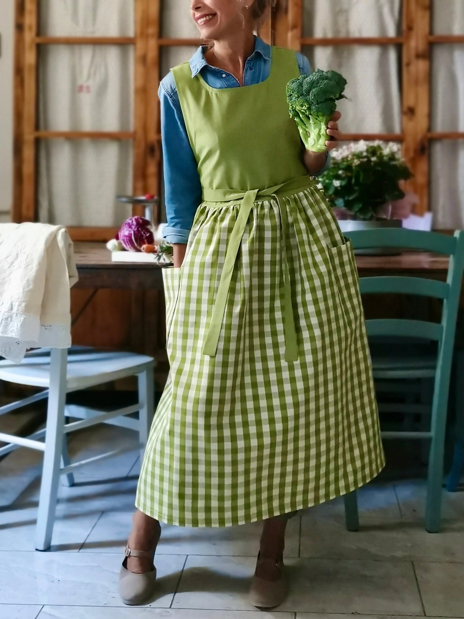 The Kiwi Green Patchwork Apron is a meticulously crafted kitchen essential that combines functionality with distinctive style, featuring a vibrant kiwi green color palette enhanced by thoughtfully arranged patchwork detailing that adds visual interest and character to your culinary workspace. This professionally designed apron is constructed with durable, high-quality materials that withstand regular use and frequent washing, making it an ideal choice for both home cooks and professional chefs who demand reliable performance and lasting value. The apron's comprehensive coverage protects clothing from spills, splatters, and stains during food preparation, cooking, and baking activities, while the adjustable neck strap and waist ties ensure a comfortable, secure fit for users of various sizes. The strategically positioned pockets provide convenient storage for kitchen tools, recipe cards, and personal items, enhancing workflow efficiency and keeping essentials within easy reach. The unique patchwork design showcases excellent craftsmanship and attention to detail, making this apron suitable for gift-giving occasions or as a stylish addition to any kitchen decor, while the fade-resistant kiwi green coloration maintains its vibrant appearance even after repeated laundering, ensuring long-term satisfaction and continued aesthetic appeal for discerning customers who appreciate quality kitchen accessories.