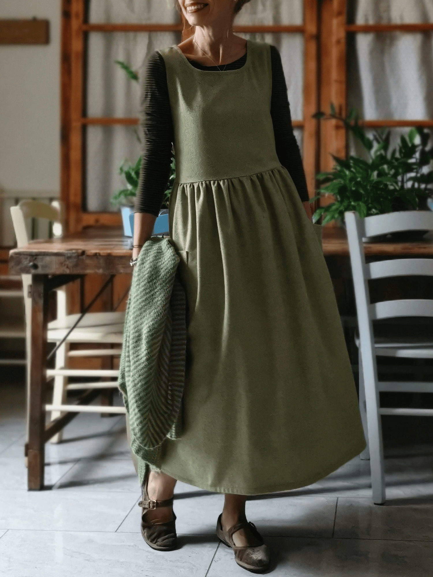 This premium Green and Hazelnut Cotton Apron combines sophisticated earth-tone aesthetics with exceptional functionality, making it an indispensable addition to any culinary enthusiast's kitchen arsenal. Crafted from high-quality cotton fabric, this apron features a distinctive color palette that blends rich forest green with warm hazelnut accents, creating a timeless design that complements both modern and traditional kitchen environments. The durable cotton construction ensures superior absorbency and stain resistance while maintaining breathability and comfort during extended cooking sessions, whether you're preparing weeknight dinners or hosting elaborate weekend gatherings. Its thoughtfully designed structure provides comprehensive coverage to protect clothing from spills, splatters, and food stains, while the adjustable neck strap and waist ties ensure a customized, secure fit for users of various sizes. The neutral yet sophisticated color scheme makes this apron suitable for both casual home cooking and more formal culinary presentations, while the easy-care cotton material allows for convenient machine washing and quick drying, ensuring consistent performance and appearance over time. This versatile kitchen essential seamlessly transitions from everyday meal preparation to special occasion cooking, making it an excellent choice for home chefs who value both practical functionality and refined aesthetic appeal in their culinary accessories.