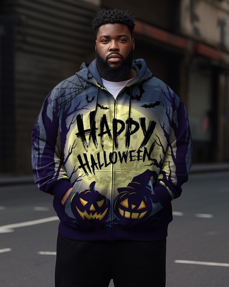 Happy Halloween Men's Plus Size Pumpkin Zip Hoodie