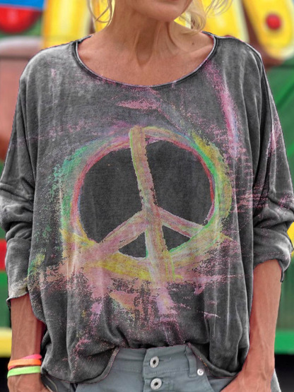 Hippie Graphic Art Print Casual Long Sleeve T-Shirt