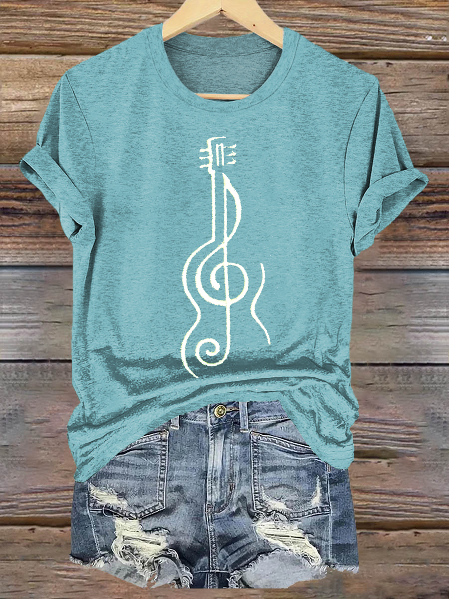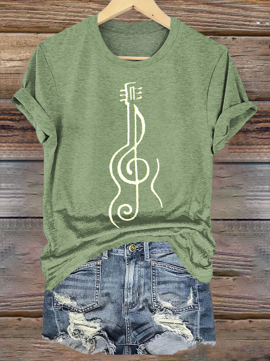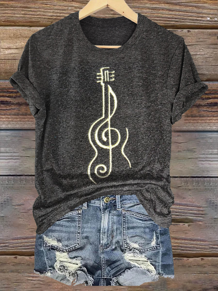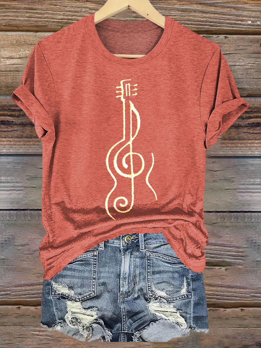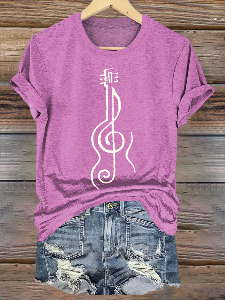 Hippie Violine Art Print Casaul Short Sleeve T-shirt