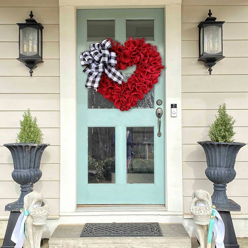 You can display this decorative heart wreath indoors or outdoors. If you plan to display the wreath outdoors, we recommend placing it in a covered area.
