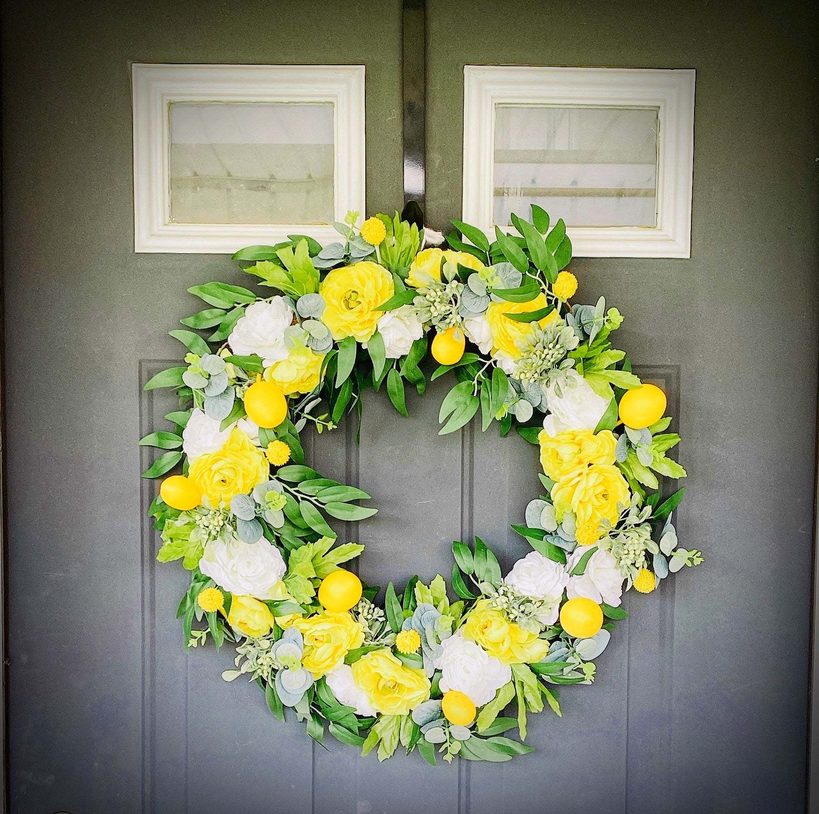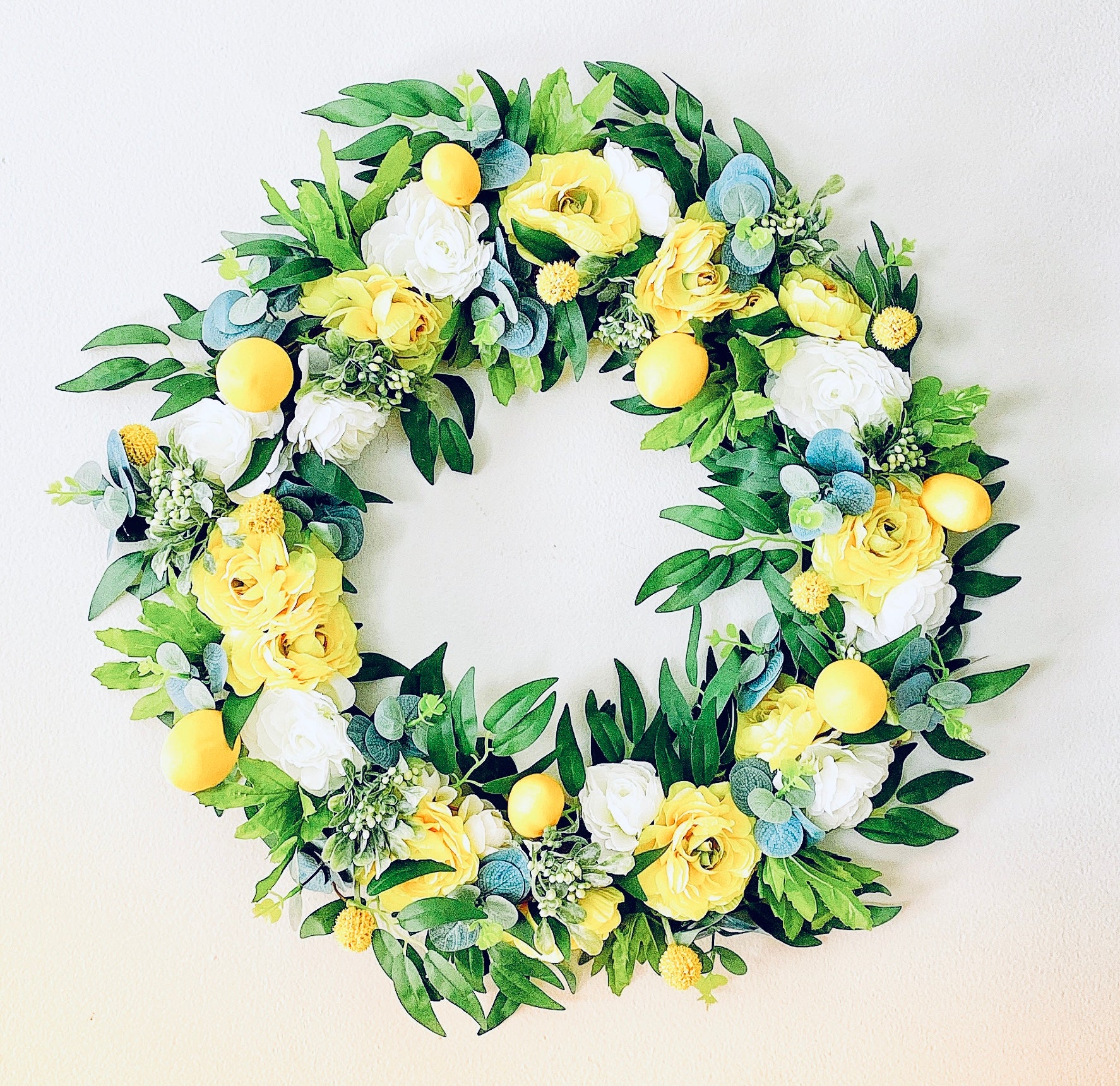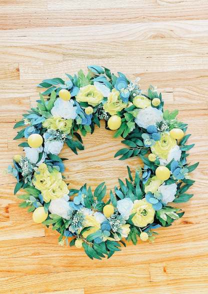 Lemon Poppy Spring & Summer Wreath - Handmade with Door Backing
