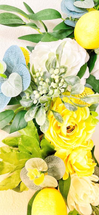 Each piece of our Lemon Poppy Spring & Summer Wreath is meticulously handmade, ensuring that no two are exactly alike. This wreath not only serves as a stunning centerpiece but also embodies a delightful blend of vibrant summer colors and whimsical charm, bringing a refreshing, seasonal touch to any home decor.