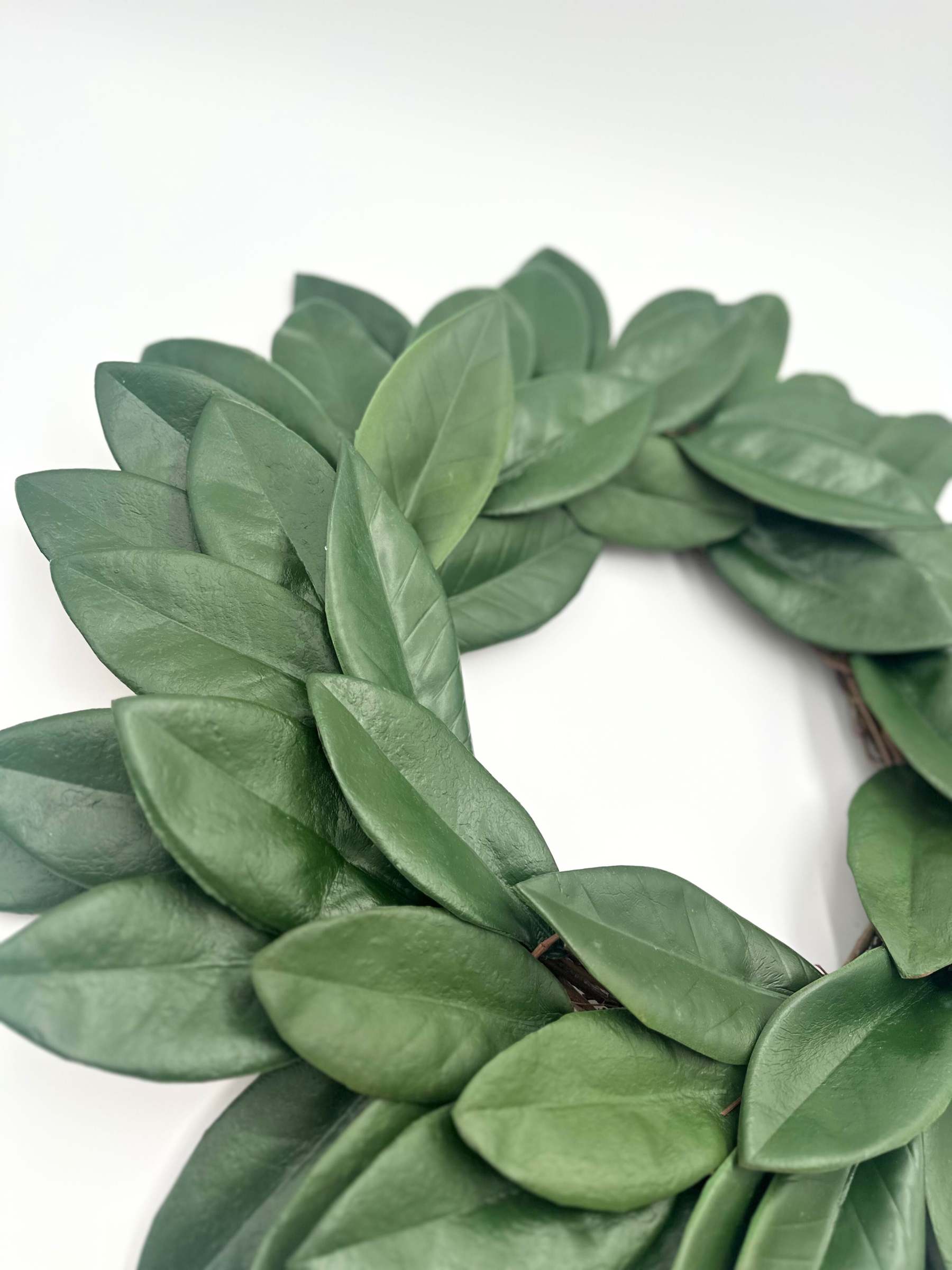 Design: Showcases rich, deep green faux magnolia leaves arranged in a classic, timeless pattern that complements both modern and traditional decor styles.