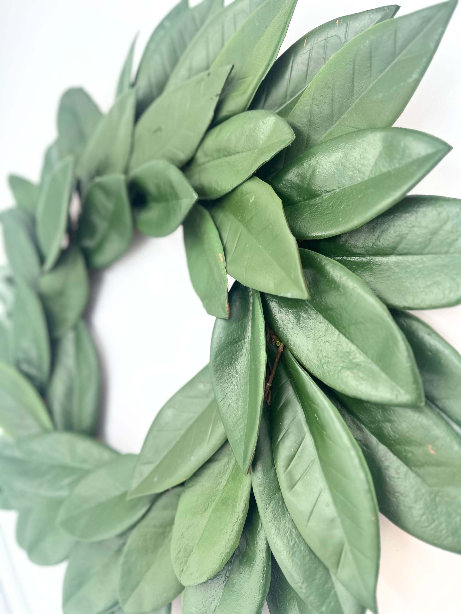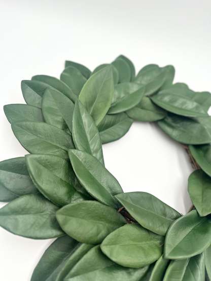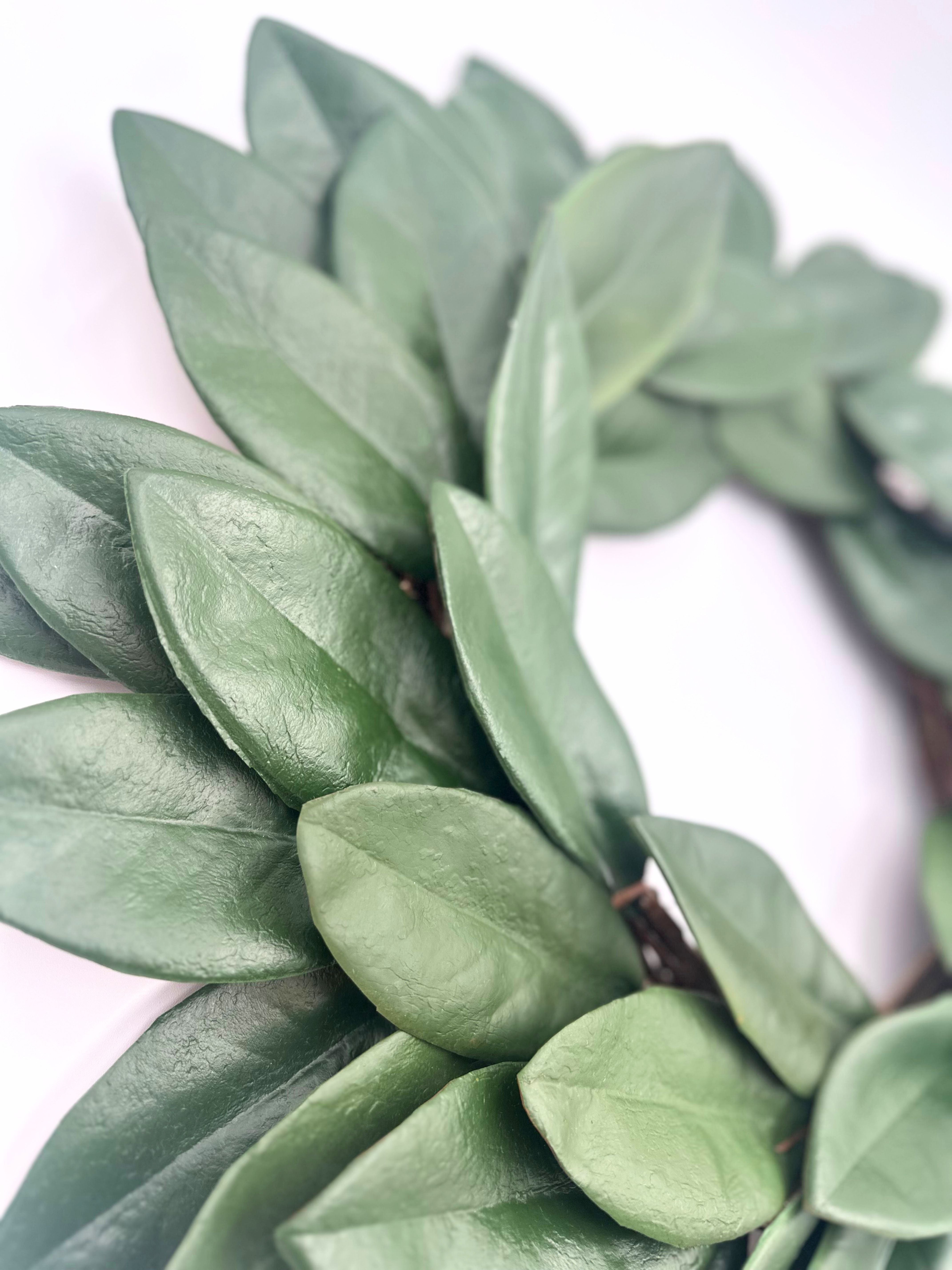 Each Magnolia Wreath is meticulously crafted, ensuring that no two are exactly alike. This stunning wreath serves as a beautiful centerpiece while embodying a blend of timeless elegance and modern farmhouse charm. Its rich, deep green faux magnolia leaves create a striking contrast, making it a standout piece for any décor.