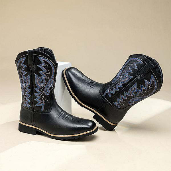 MEN'S CASUAL EMBROIDERED SQUARE TOE RIDER BOOTS 04487863S