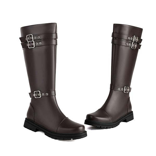 Men's Military Style Belt Buckle Decorated Knee High Boots combine rugged military-inspired design with bold, fashionable details. These boots feature a striking knee-high silhouette, offering both a commanding presence and practical coverage. The military style is emphasized by prominent belt buckle decorations, typically located around the ankle or calf, adding a unique, edgy touch to the overall look. The sturdy construction of these boots is designed for durability, making them suitable for a variety of occasions, from casual outings to more adventurous activities. The tall design provides additional support around the lower leg, while the reinforced toe and heel sections ensure long-lasting wear. These boots are perfect for those looking to make a statement, as their military-inspired aesthetics pair well with both casual and semi-casual outfits. They work well with jeans, cargo pants, or even tactical wear, creating a bold, fashionable look. Whether you're aiming for an edgy, street-inspired vibe or simply want a versatile boot that stands out, Men's Military Style Belt Buckle Decorated Knee High Boots offer a perfect blend of style, function, and attitude.