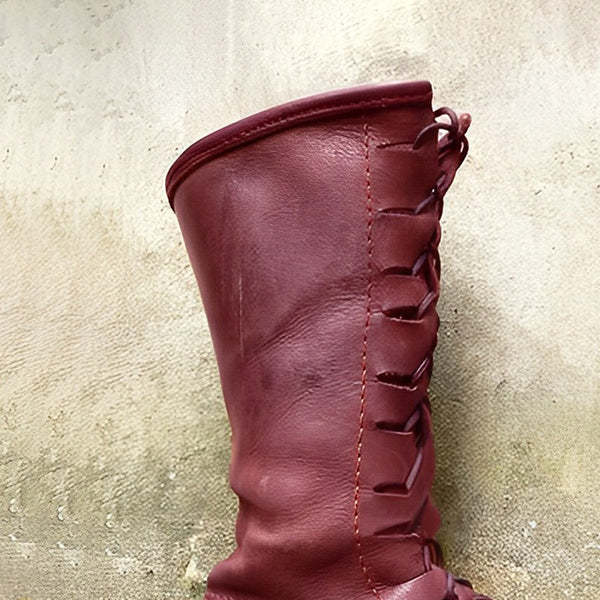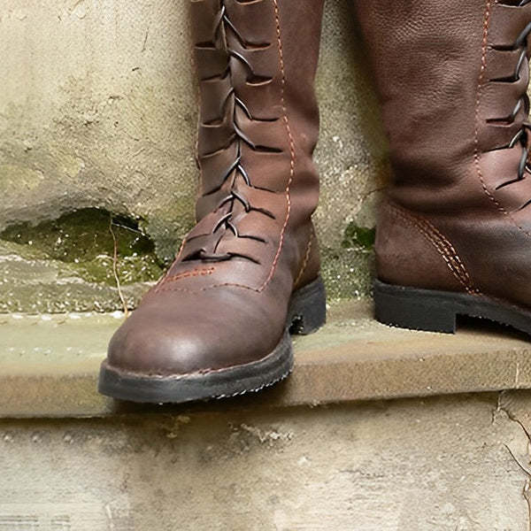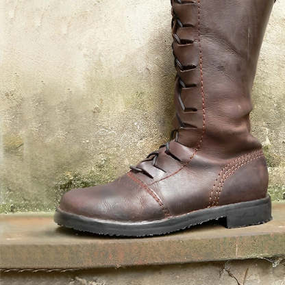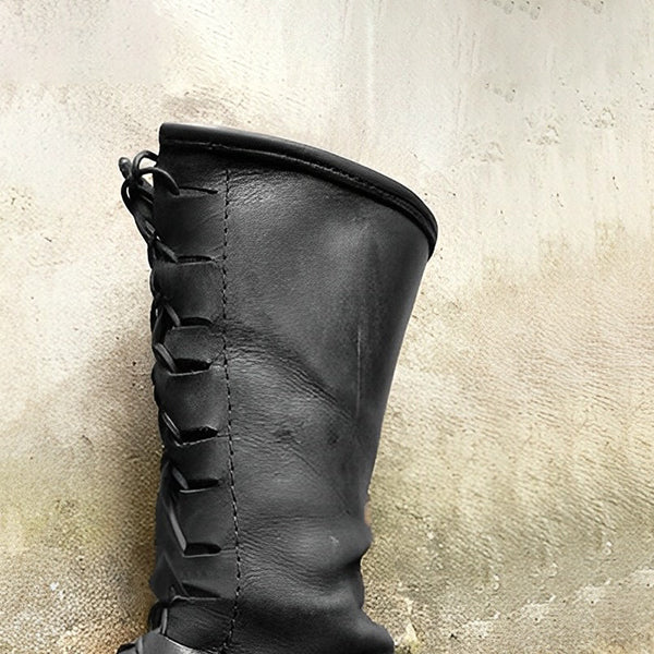 MEN'S RETRO FRONT LACE-UP FLAT MID-CALF BOOTS 47136729S