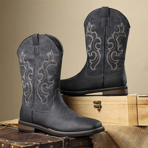 MEN'S SOLID COLOR EMBROIDERED COWBOY BOOTS 23229455YL