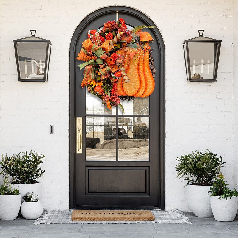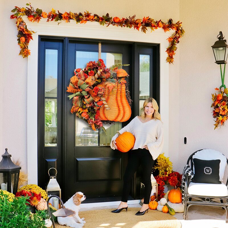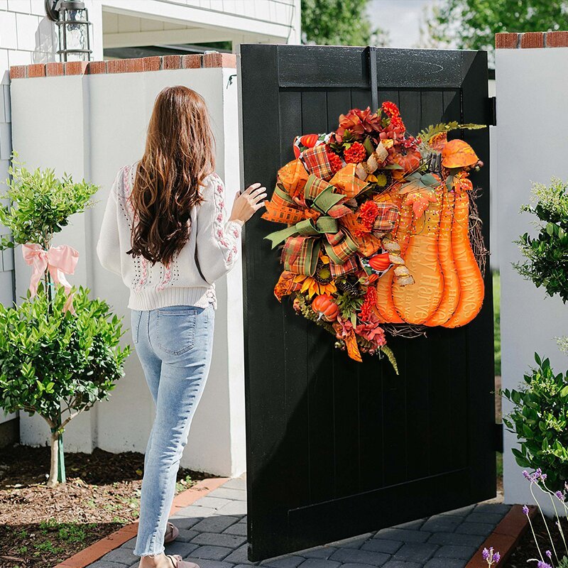 🌷Feature: Brand new design! The charm of big pumpkins, round vines, bows and green plants! Very suitable for all your home decoration needs.
