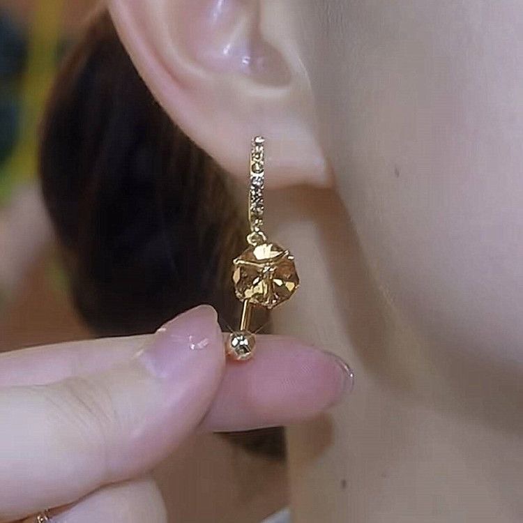 Shining and luxurious white diamond ball tassel earrings