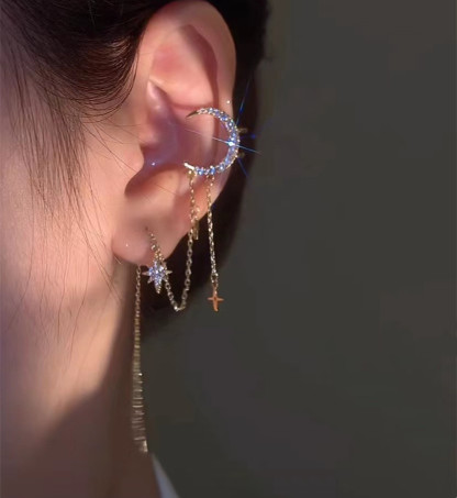 Moon and Star Tassel Ear Cuff
