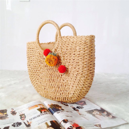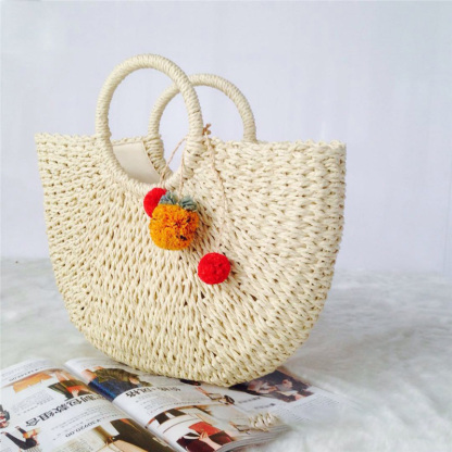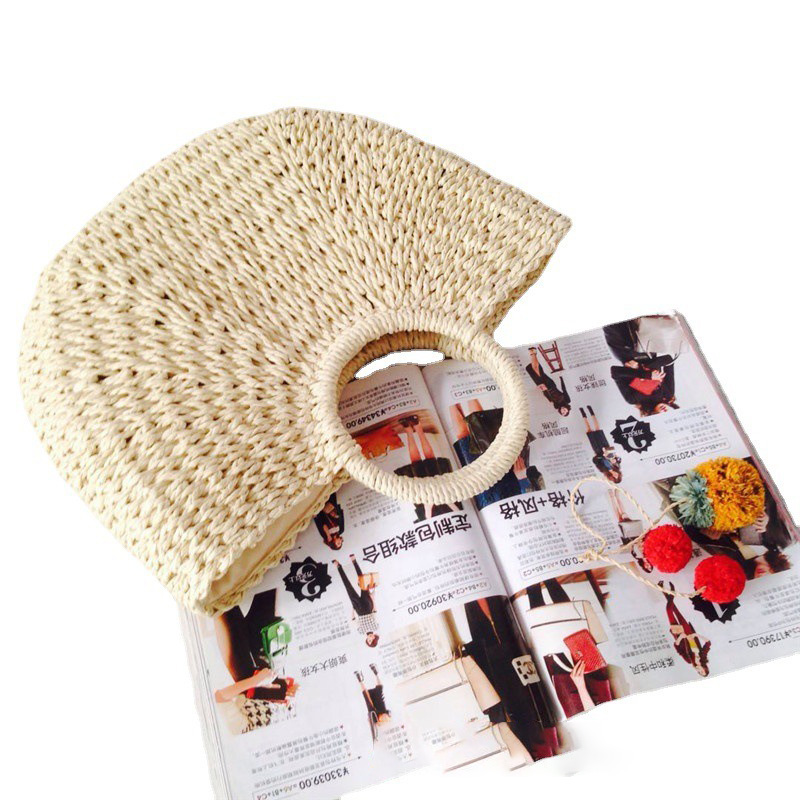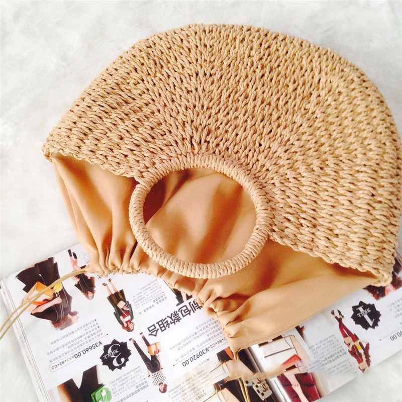 Straw Bag Versatile Women's Bag Casual Round Bucket Woven Straw Bag Vacation Beach Bag