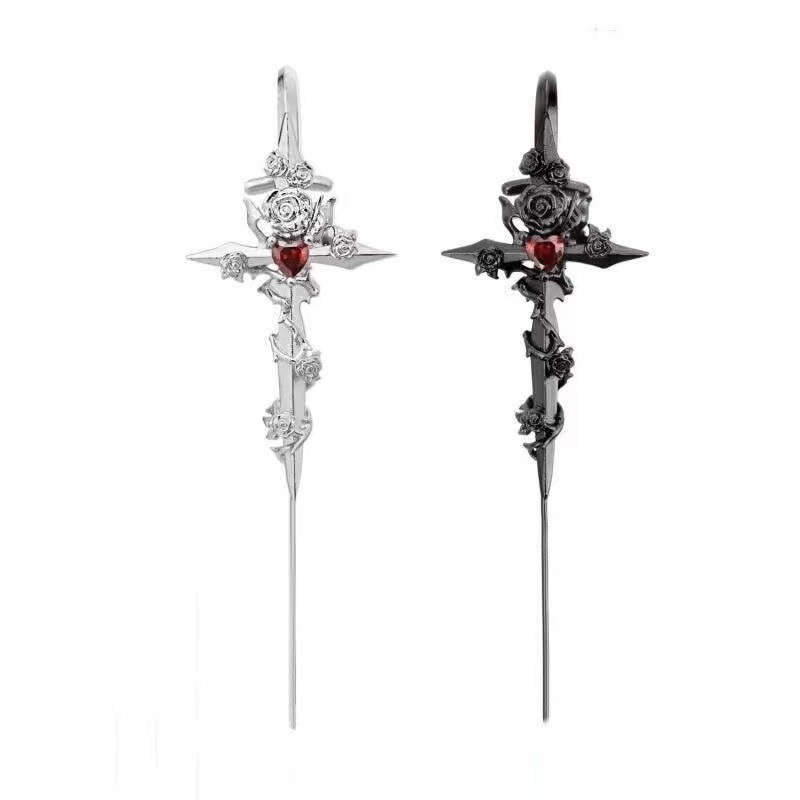 Thorn Rose Heart Piercing Earrings