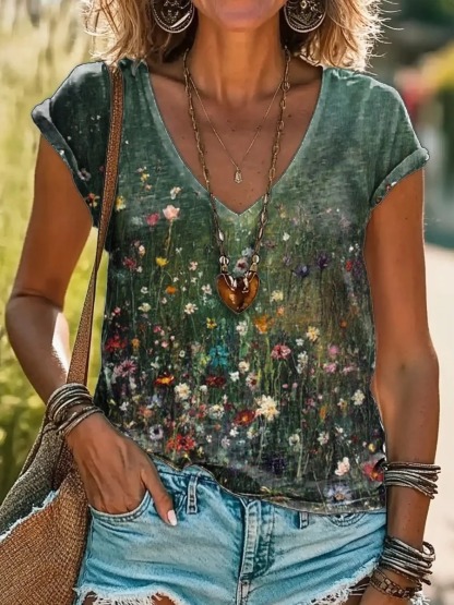 Vintage Kaleidoscope Tie Dye Print 100%Cotton V-neck T-Shirt