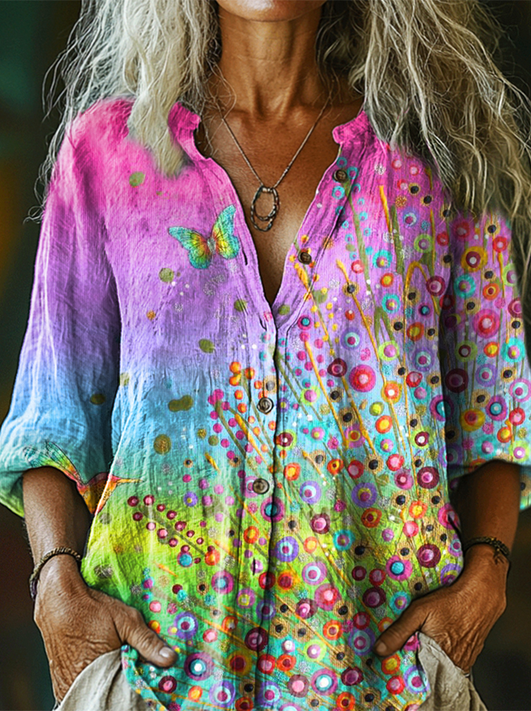 Women's Artistic Floral Colorful Print Long Sleeve Shirt