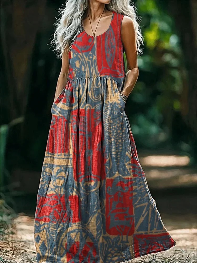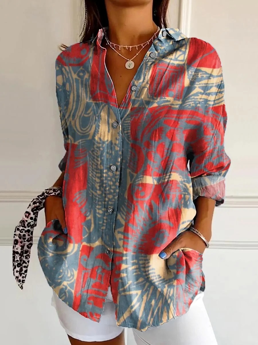 Women's Bohemian Ethnic Collage Art Pattern Print Casual Cotton Linen Shirt