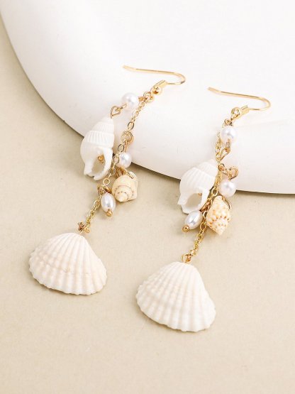 Women's Bohemian Long Pearl Shell Conch Earrings